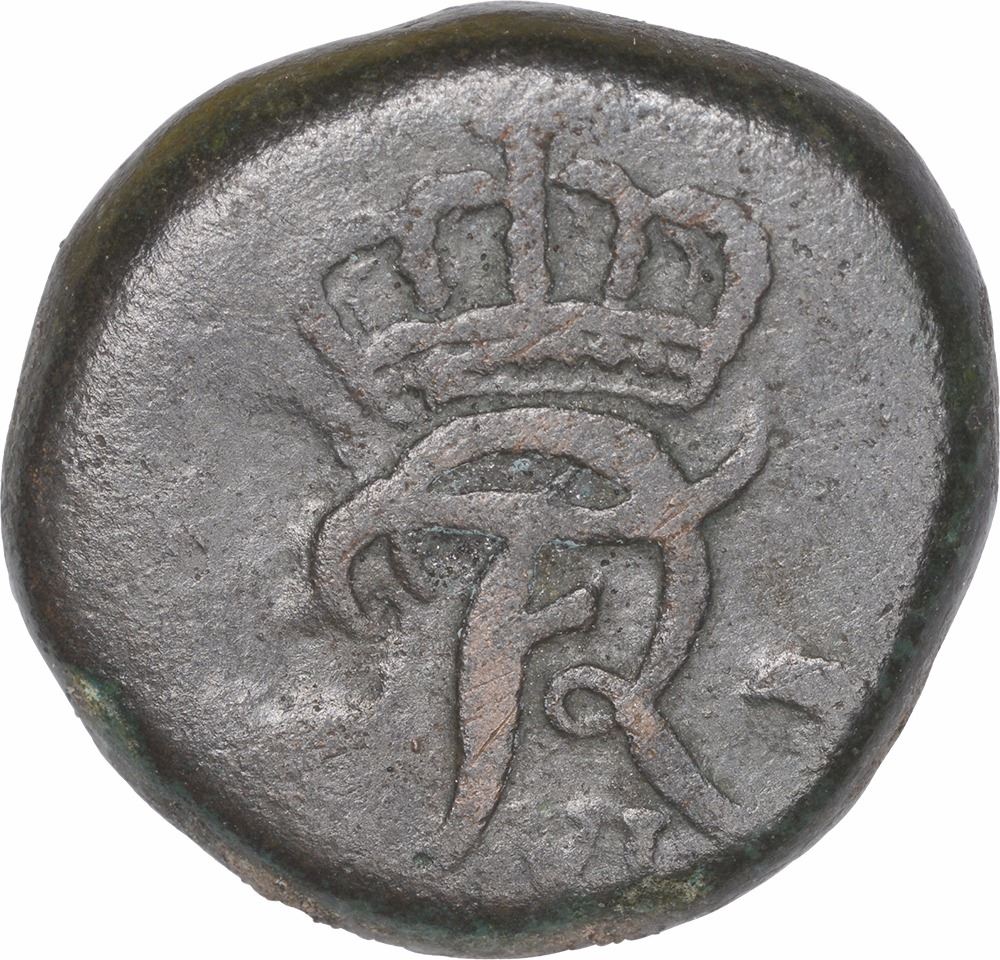 India-Danish, Tranquebar, Frederik VI, Copper 4 Cash,1816 AD,Obv:crowned FR (Entwined),Rev:X between star over date, 1816,5.77g, 17.00mm,(KM # 158),about very fine.