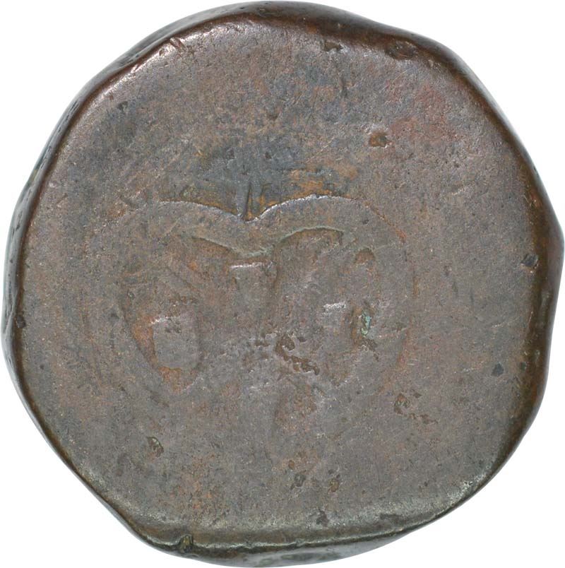 Madras Presidency, Copper 4 pice, Obv: U.E.I.Co. bale mark, Rev: scales, value "4" above persian-adil (just), 42.10g, 28.20mm, (KM# 201), about very fine.