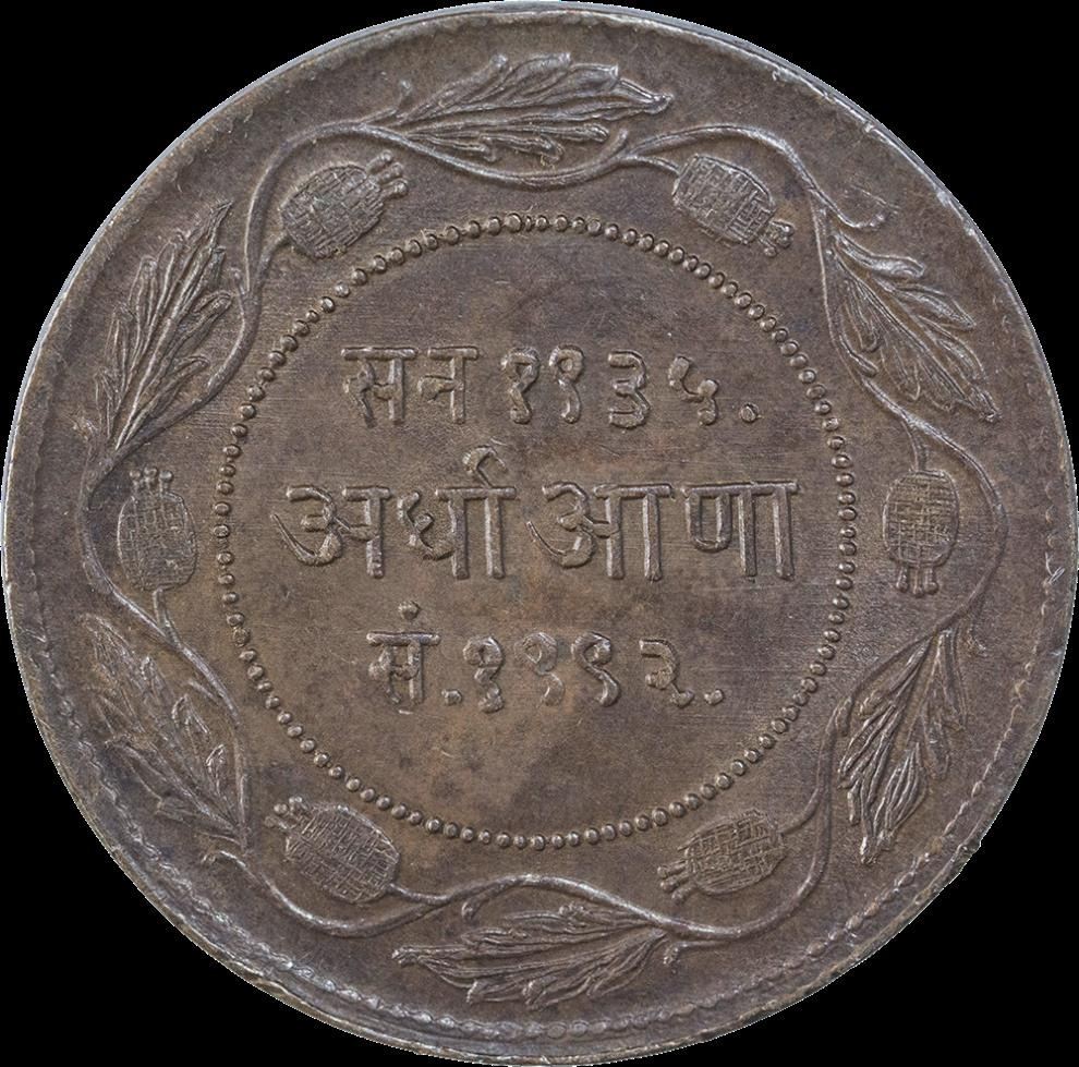 Copper Half Anna Coin of Maharaja Yeshwant Rao Holkar of Indore State.