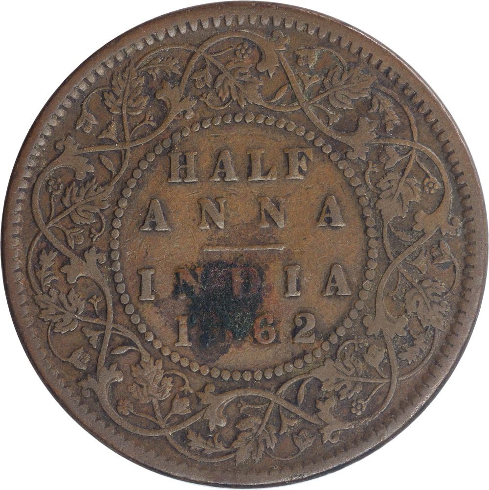 Copper Half Anna Coin of Victoria Queen of Calcutta Mint of 1862.