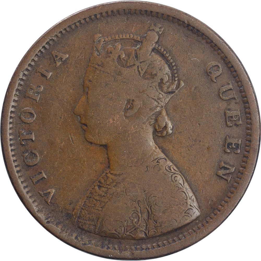 1862,Victoria Queen,Copper 1/2 Anna, Calcutta Mint, Flat top 1 in 1862,Bust/A, (PR # 576), about very fine,Rare.