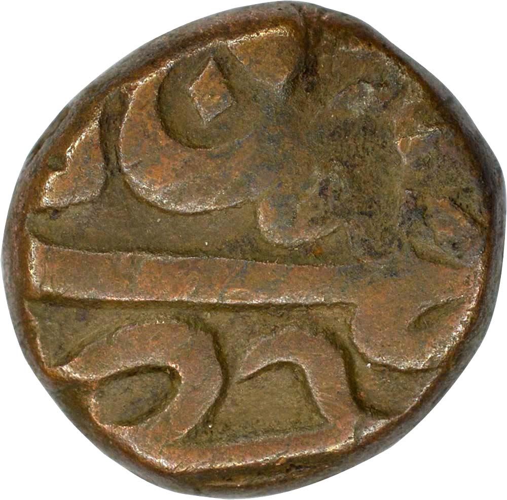 Akbar, Jalal-ud-din Muhammad, Khitta Awadh Mint, Copper 1/2 Dam (Nisfi), Obv:persian inscription, khitta dar-ul-khilafat, Rev:date in numeral persian legend, Unlisted variety with unusual weight denomination, 13.75g, 19.94mm, aboutvery fine,