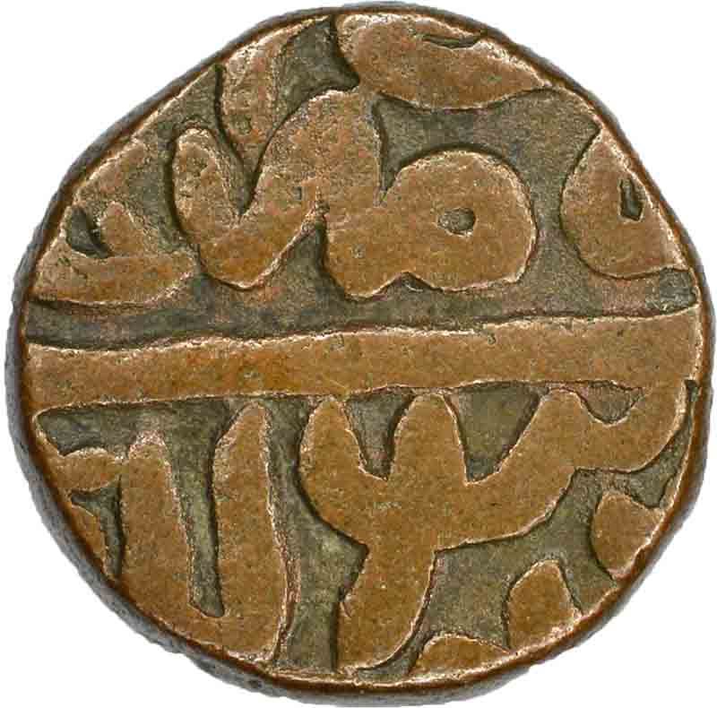 Delhi Sultanate, Suri Dynasty, Islam Shah Suri,Copper 1/2 Paisa, Obv:abu ‘l muzaffar islam shah bin sher shah sultan khallada allah mulkahu darb shahgarh,Rev:fi ‘ahd al-amir al-hami ak-din al-dayyan, mint mark of a lion or deer to the left of sultan on obverse, 8.80g, 17.18mm, (GG # D1015) about very fine,Rare.