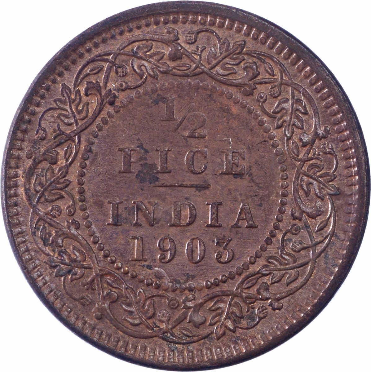 1903, King Edward VII, Copper 1/2 Pice, Calcutta Mint, (PR # 735), Gem Brown UNC.