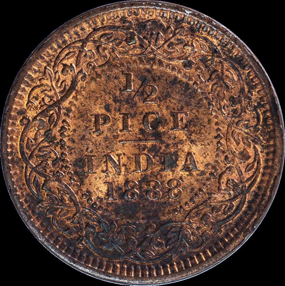 Copper Half Pice Coin of Victoria Empress of 1888.