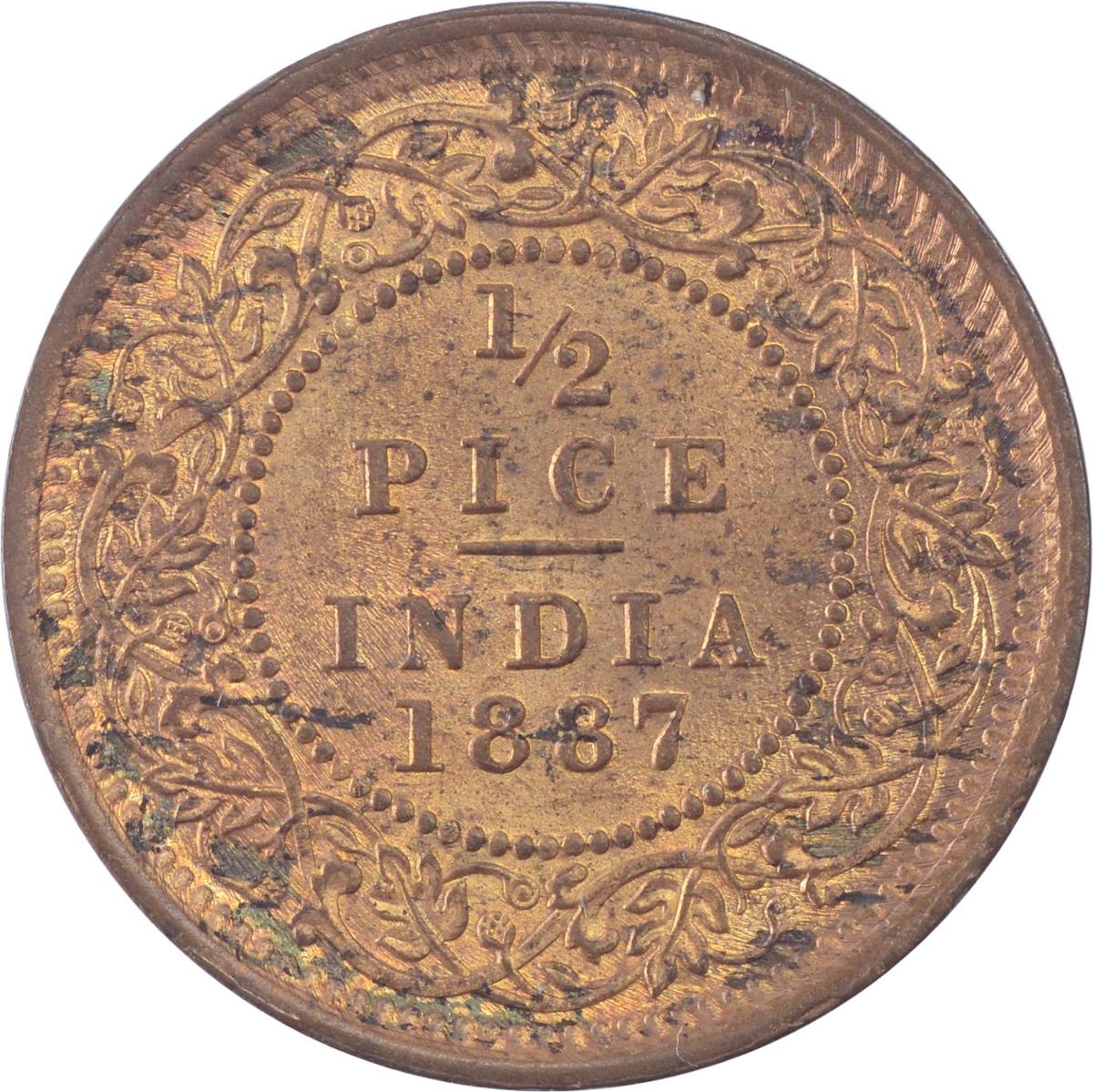 Copper Half Pice Coin of Victoria Empress of Calcutta Mint of 1887.