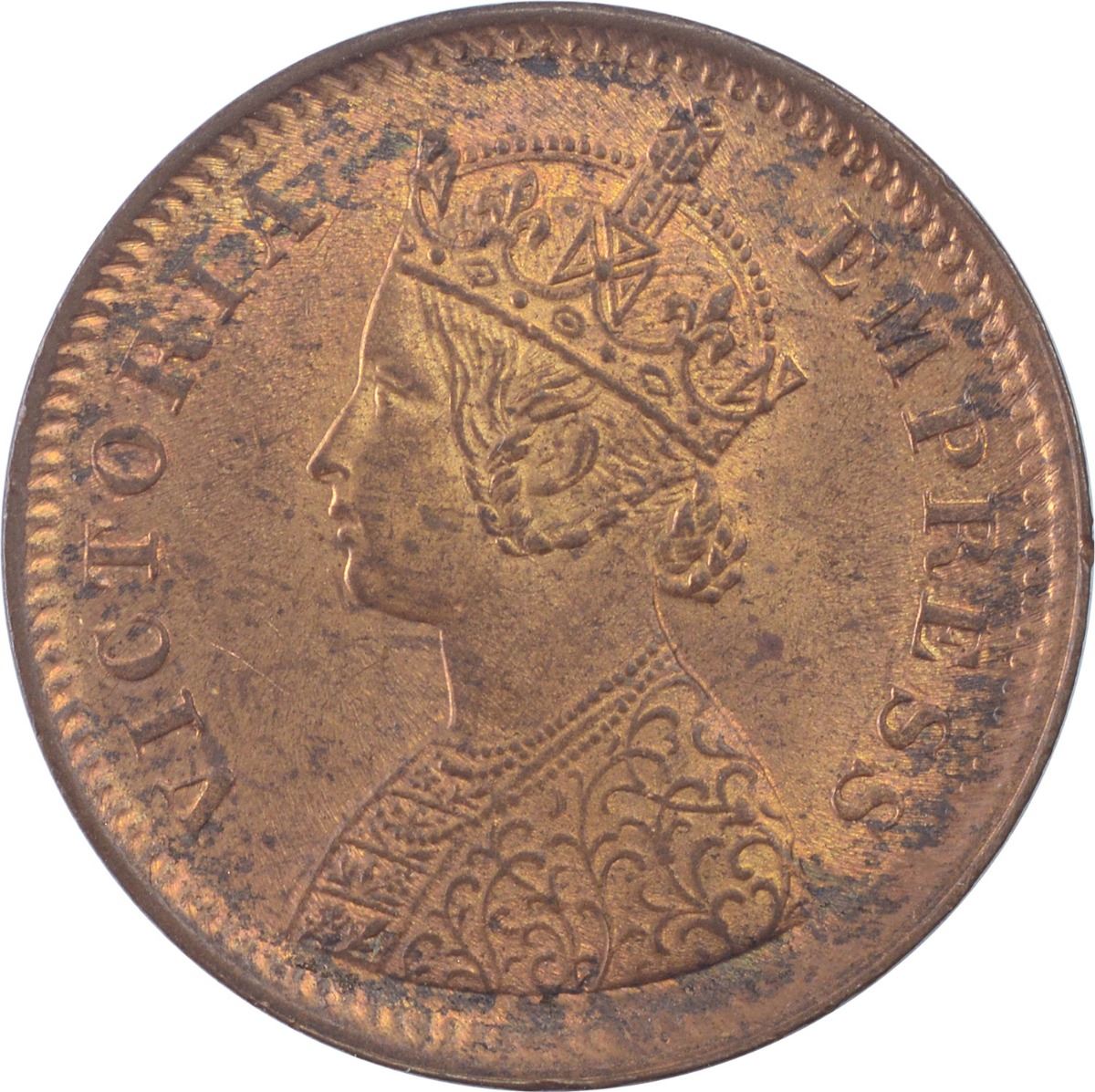 1887, Victoria Empress, Copper 1/2 Pice, Calcutta Mint, (PR # 719), Gem Red UNC, Rare.