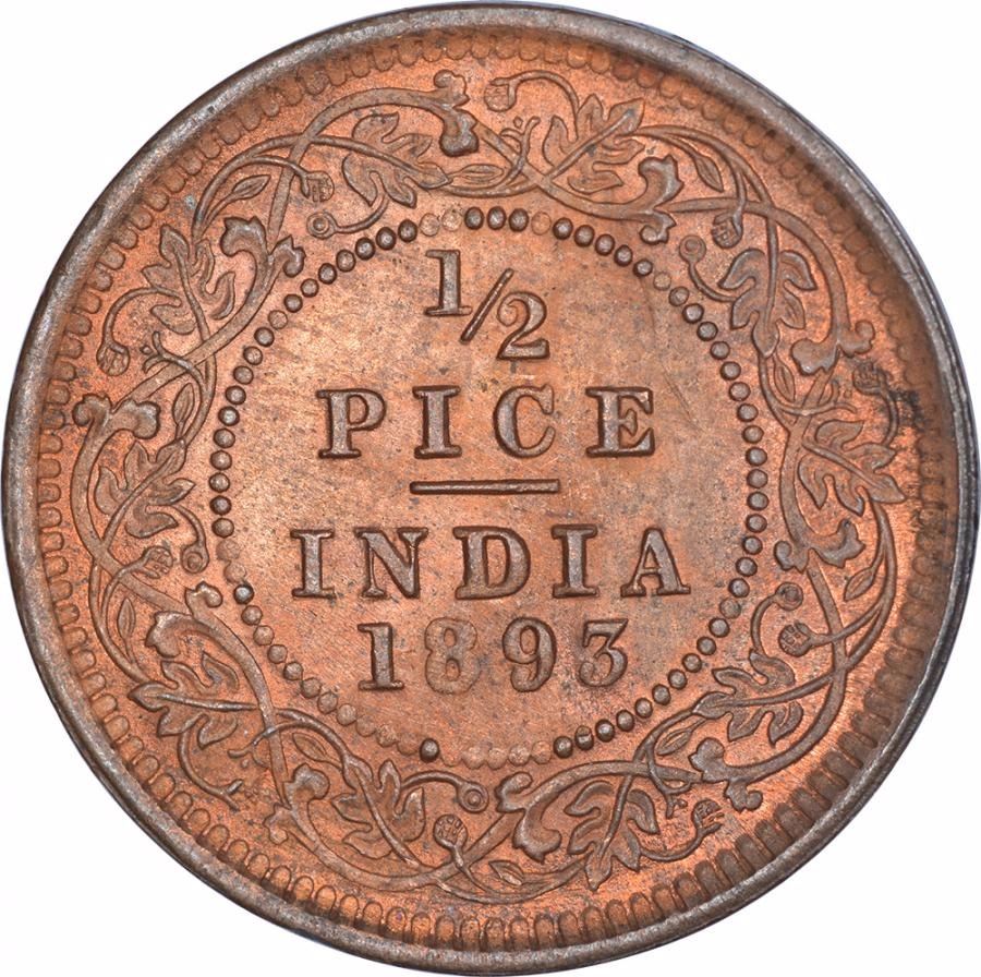 1893, Victoria Empress, Copper 1/2 Pice, Calcutta Mint, (PR # 726), RedUNC, Scarce.