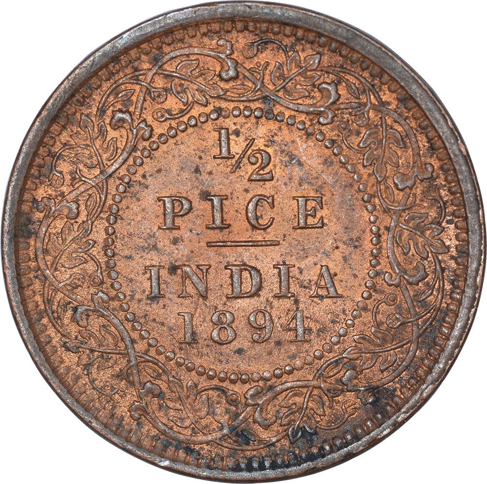 Copper Half Pice Coin of Victoria Empress of Calcutta Mint of 1894.