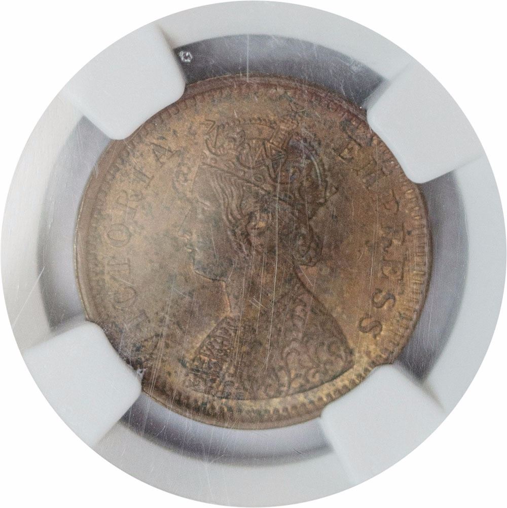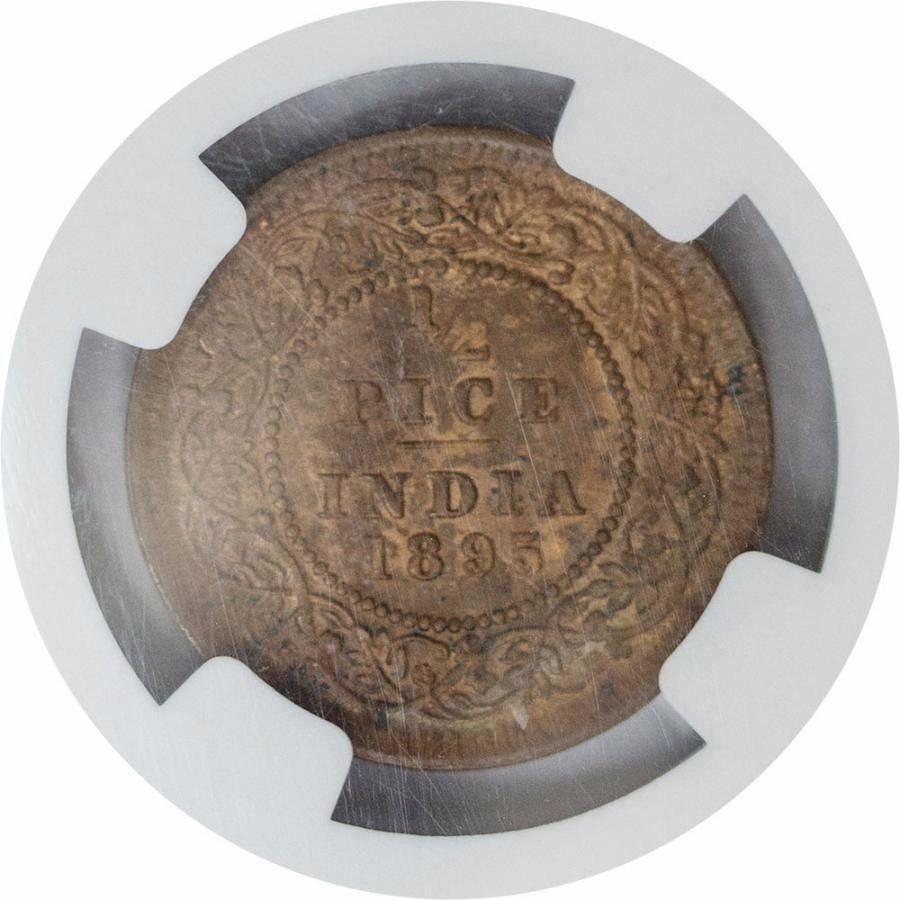 1895, Victoria Empress, Copper 1/2 Pice, Calcutta Mint, (PR # 728),graded slabbed by NGC as MS 62 BN, Scarce.