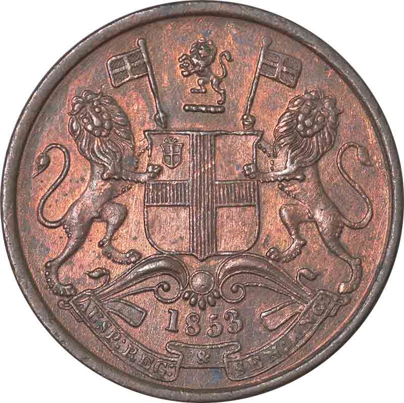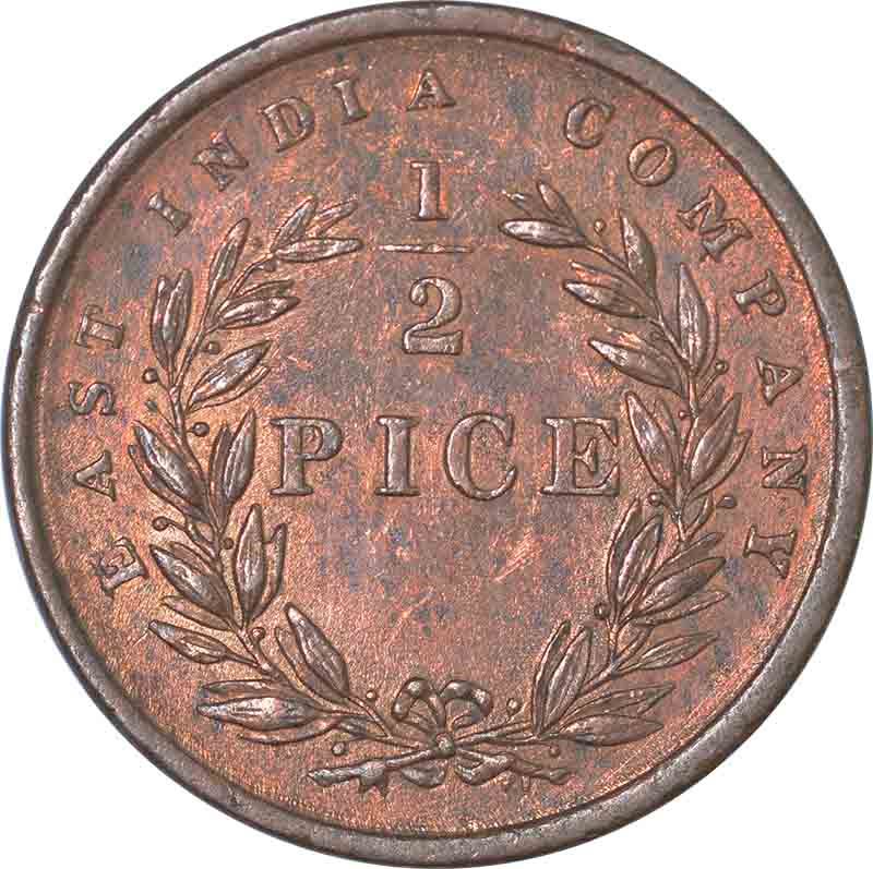 Copper Half Pice of East India Company of Calcutta Mint of 1853.