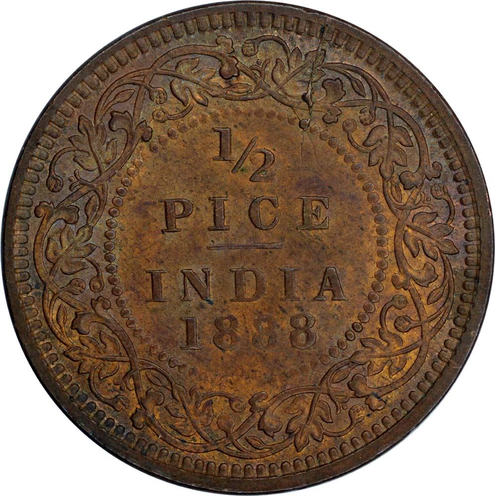 Copper Half Pice of Victoria Empress of Calcutta Mint of 1888.