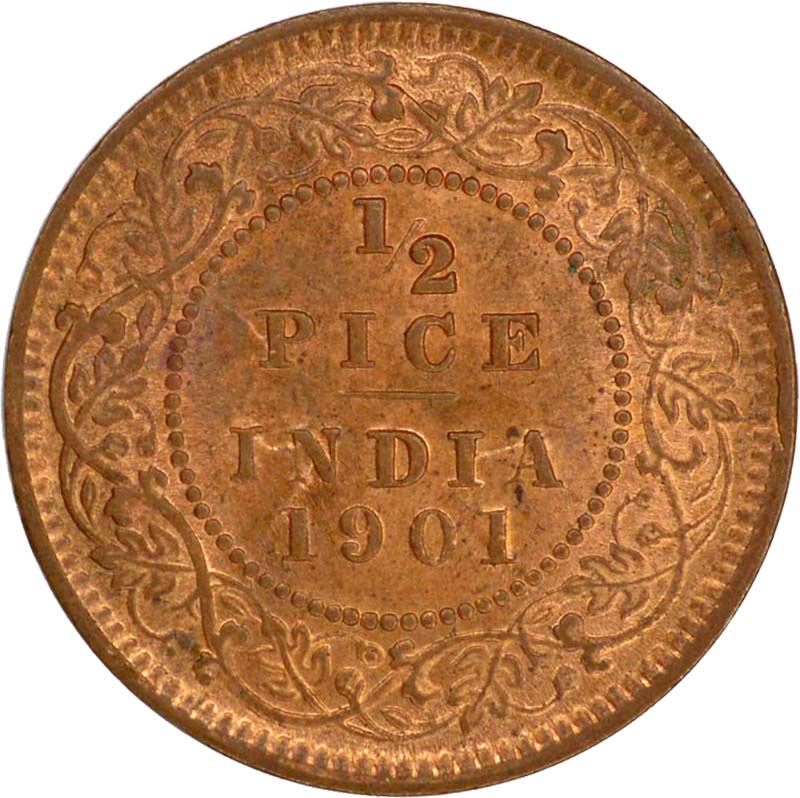 Copper Half Pice of Victoria Empress of Calcutta Mint of 1901.