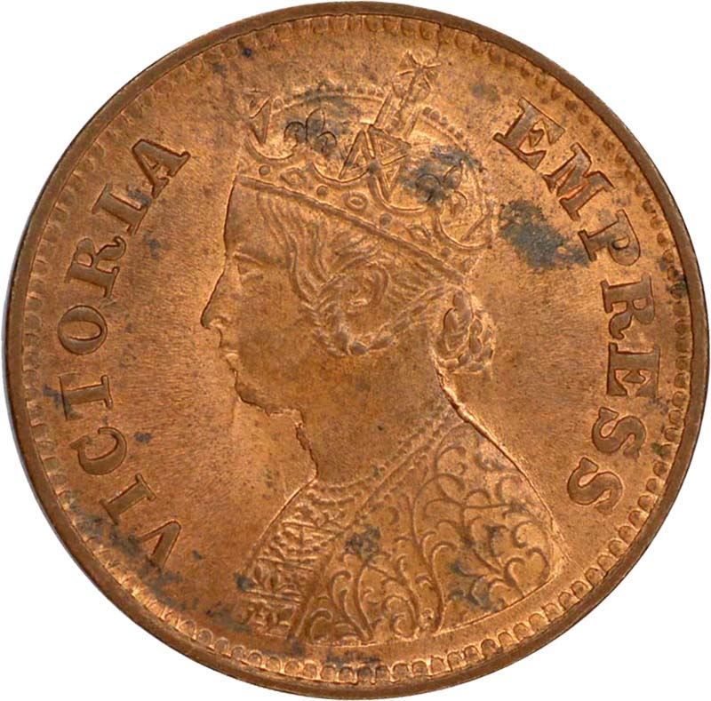 1901, Victoria Empress, Copper 1/2 Pice , Calcutta Mint, Deep ghost impression,(PR # 734), Red UNC.