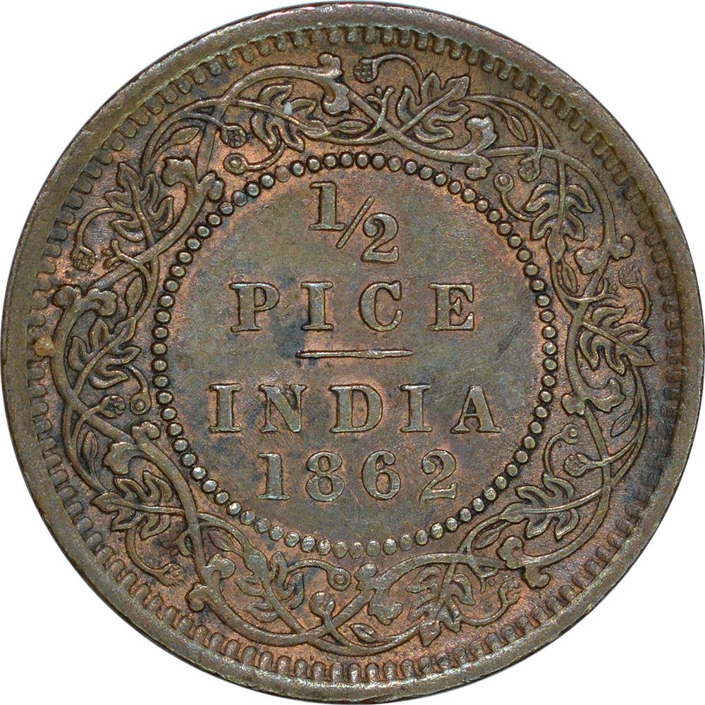 Copper Half Pice of Victoria Queen of Calcutta Mint of 1862.