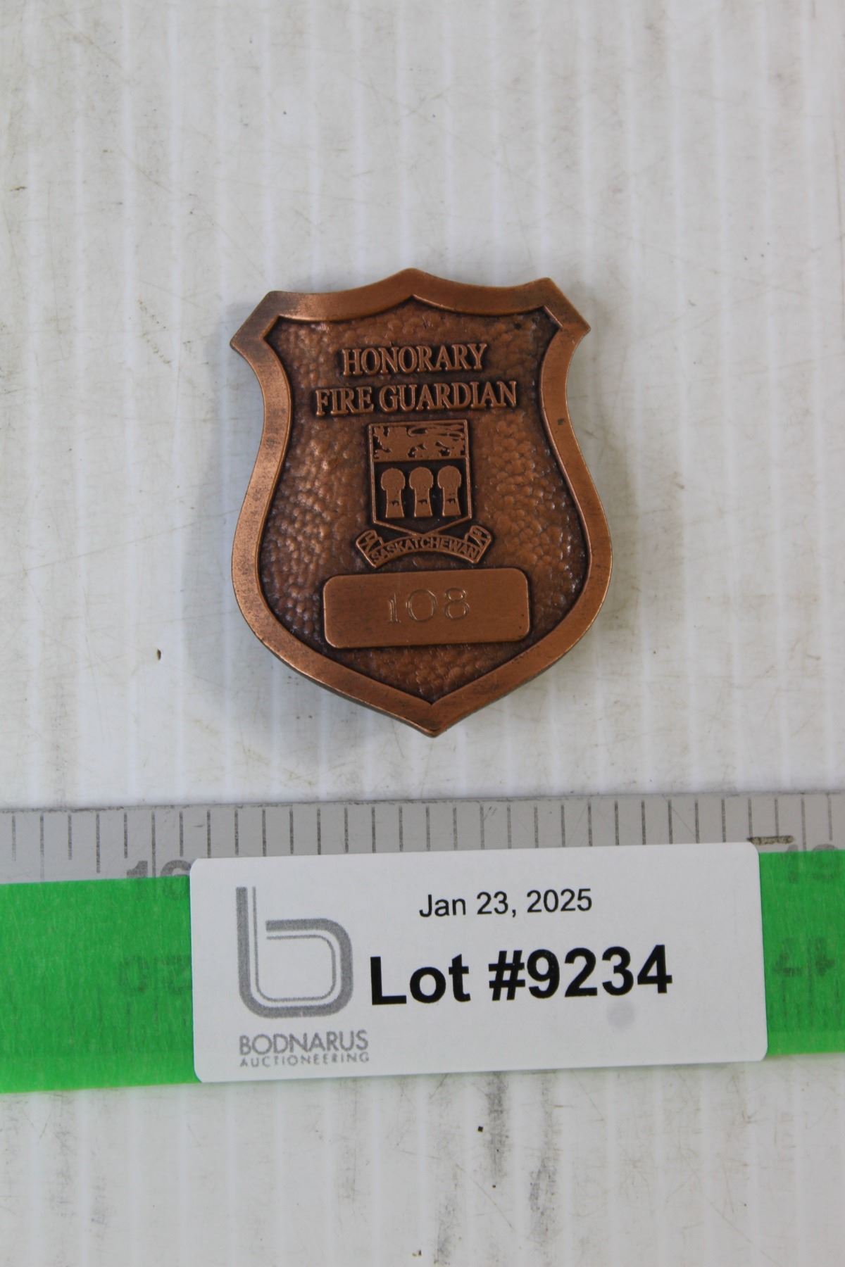 Copper Honorary Fire Guardian Saskatchewan 108 Pin Back Button