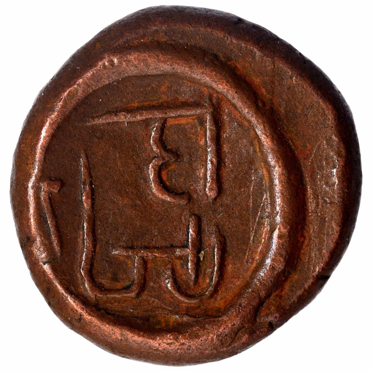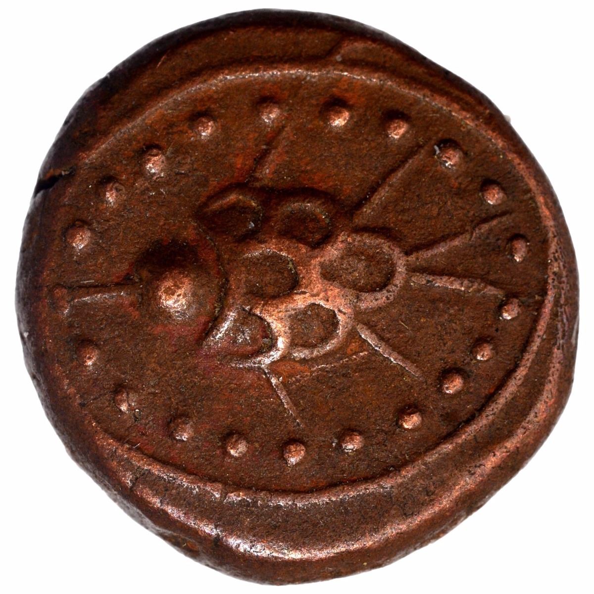Arcot State, Nawab of Arcot, Copper Kasu, Obv: fish in circular border, facing to left, Rev: letters in tamil Na va bu, 4.02g, 14.46mm, (Mitch.TK # 1003), about extremely fine.