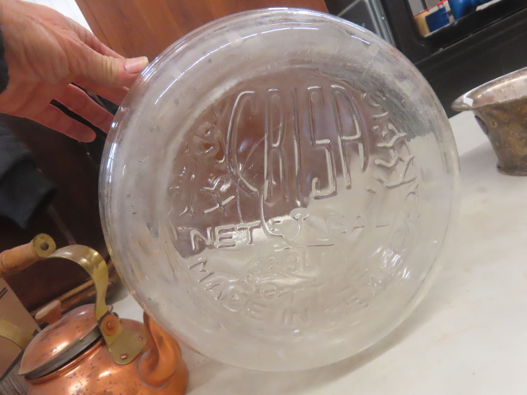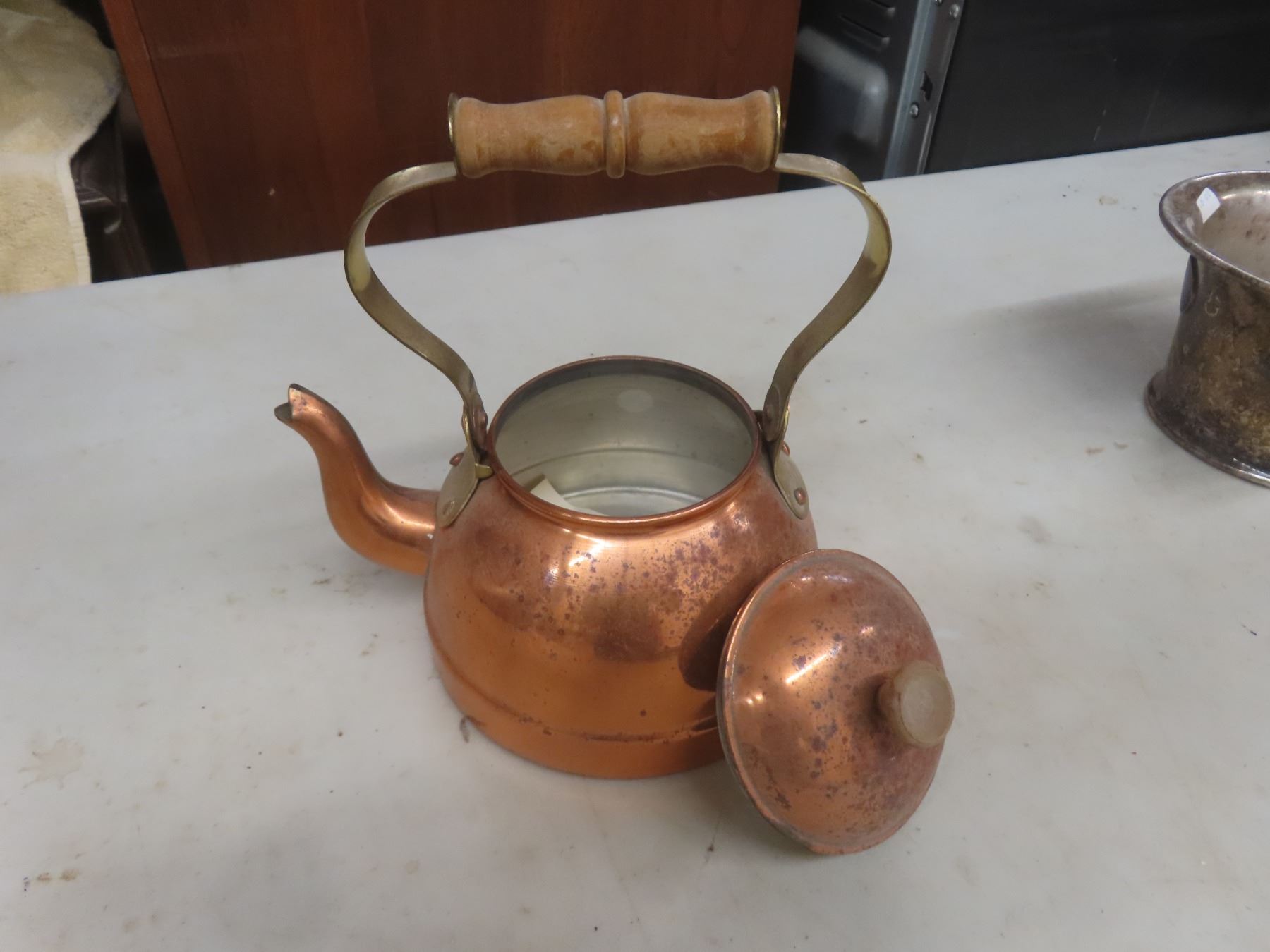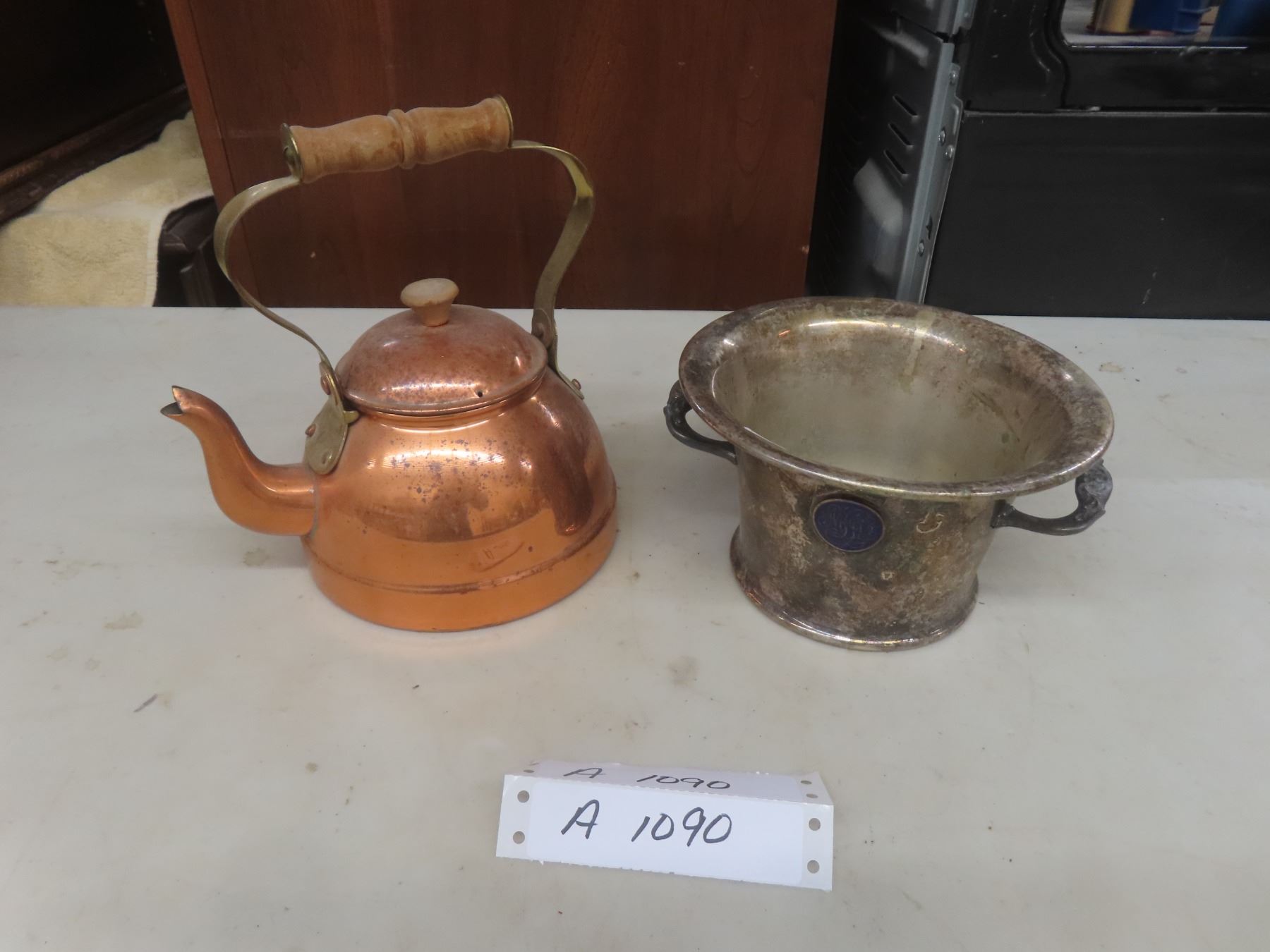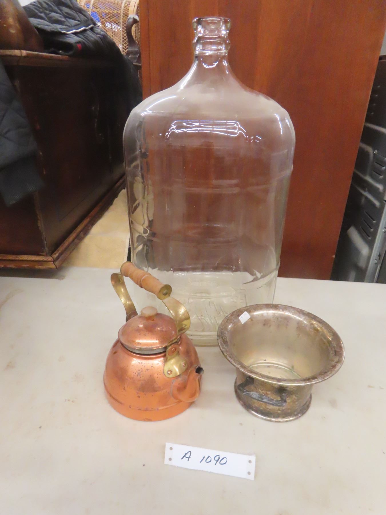 Copper Kettle; Silver-Plated Two-Handle Bowl; and Glass Carboy