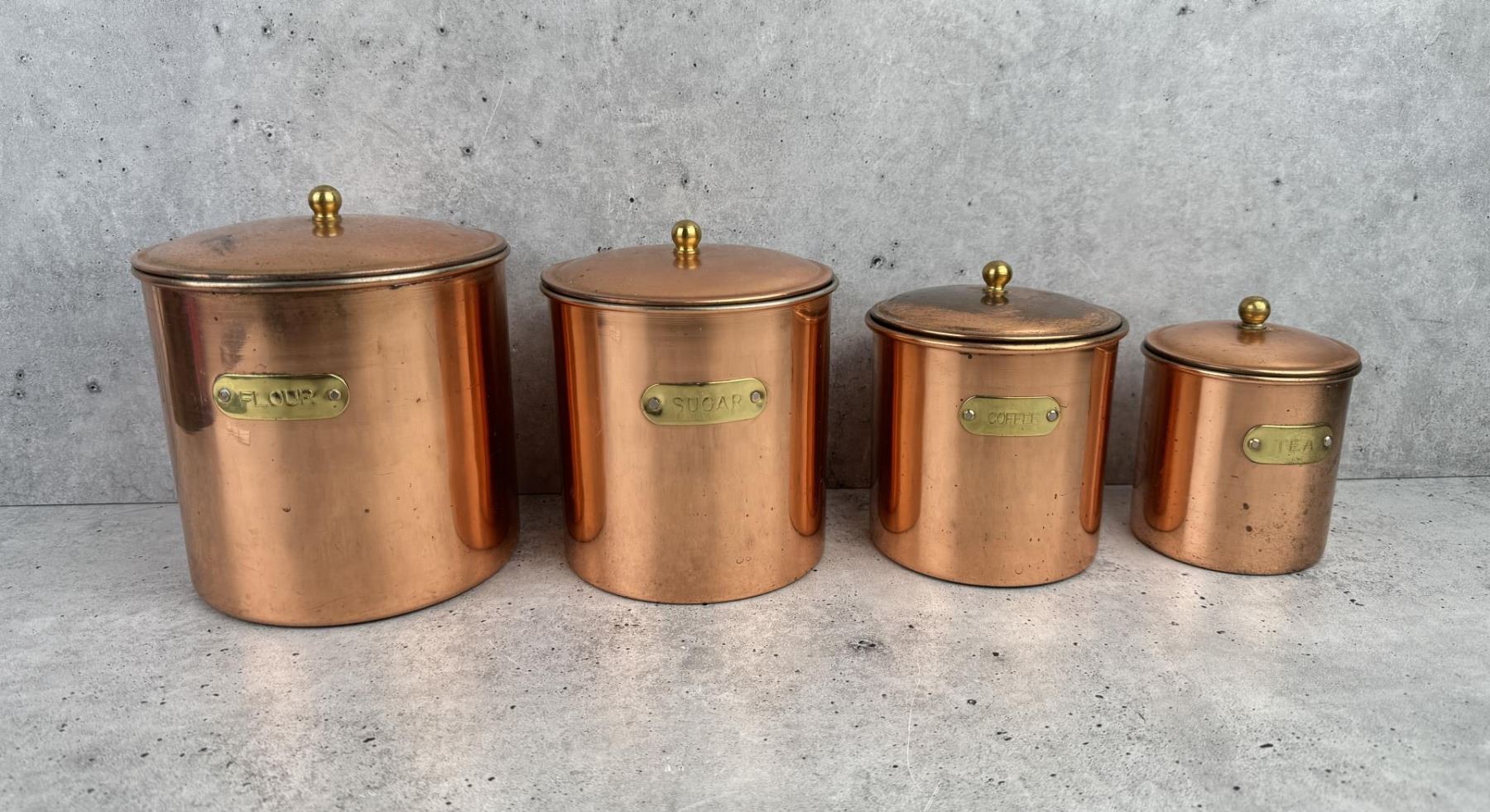 Flour canister measures 6 1/2" tall by 5 3/4" in diameter.