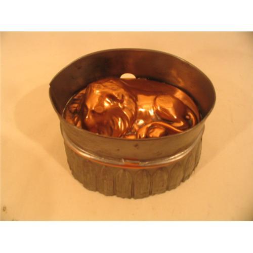 Great little tin and copper mold in a rare Lion form. Completely original condition. No dents or other imperfections. Mid-1800's. Measures 6" long by 4 1/4" wide at its widest point by 4 3/4" high. Not to be confused with newer reproductions. Your complete satisfaction is our goal. If you are not happy with an item purchased, return it in it's original condition for a refund.