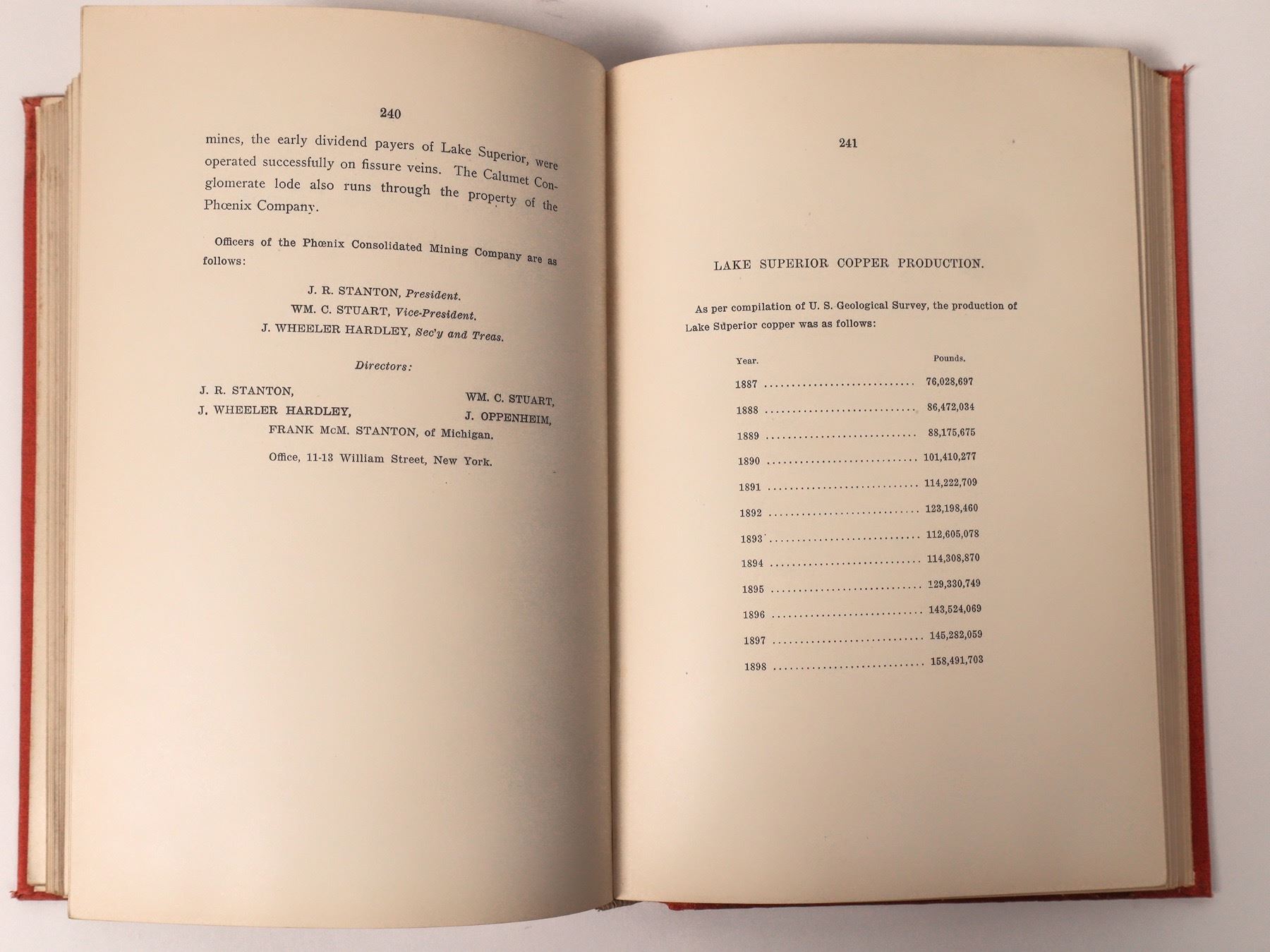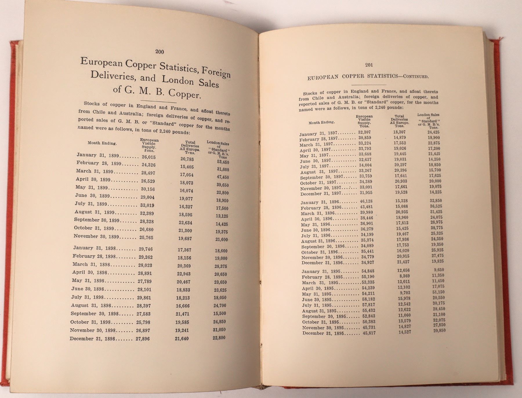 Copper Manual. Copper Mines, Copper Statistics, Copper Shares and A Summary of Information on Copper, Etc. by D. Houston & Co. Metal Brokers, New York. Volume 2. 1899. 398 pages. 6.25 x 9.5 inches. Good condition.