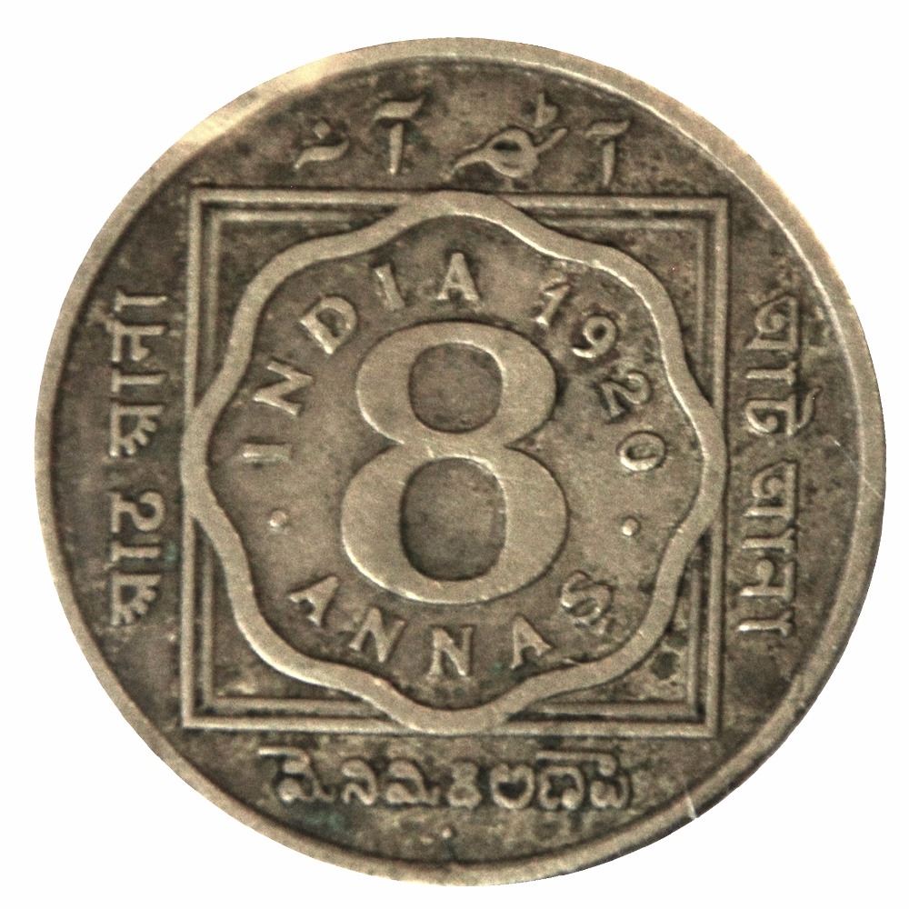 1920,King George V,Copper Nickel 8 Annas,Calcutta Mint,(PR # 870),about very fine,Rare.