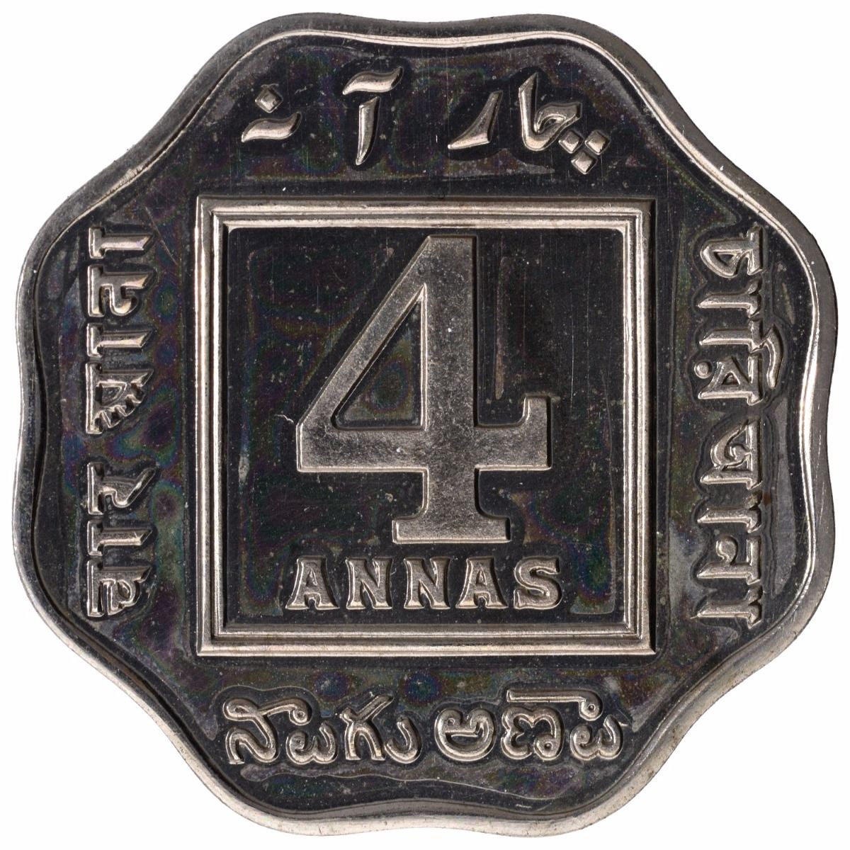 1919,King George V,Copper Nickel 4 Annas,Calcutta Mint,(PR # 874),RestrikeProof.