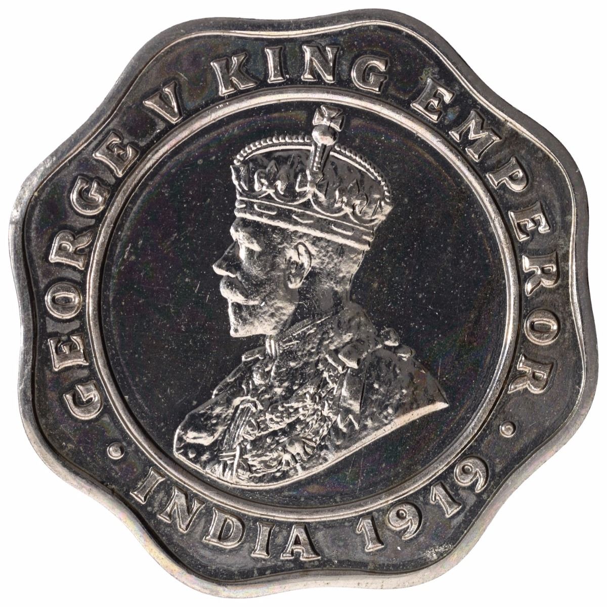 Copper Nickel Four Annas Proof Coin of King George V of Calcutta Mint of 1919.