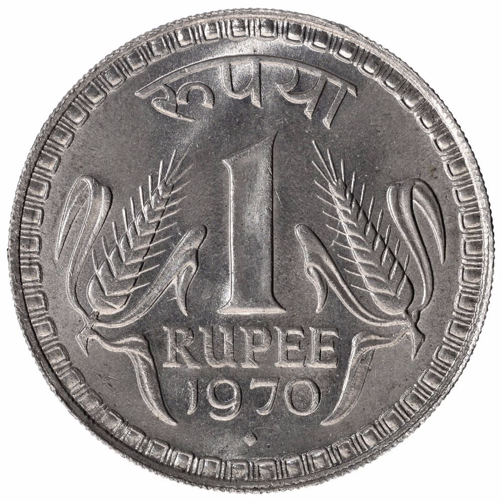 Republic India,1970,Cupro Nickel Rupee, BombayMint, 10.1g, 28.13mm, (KM # 75.2),Gem UNC,Rare.