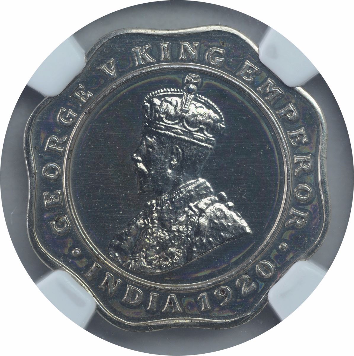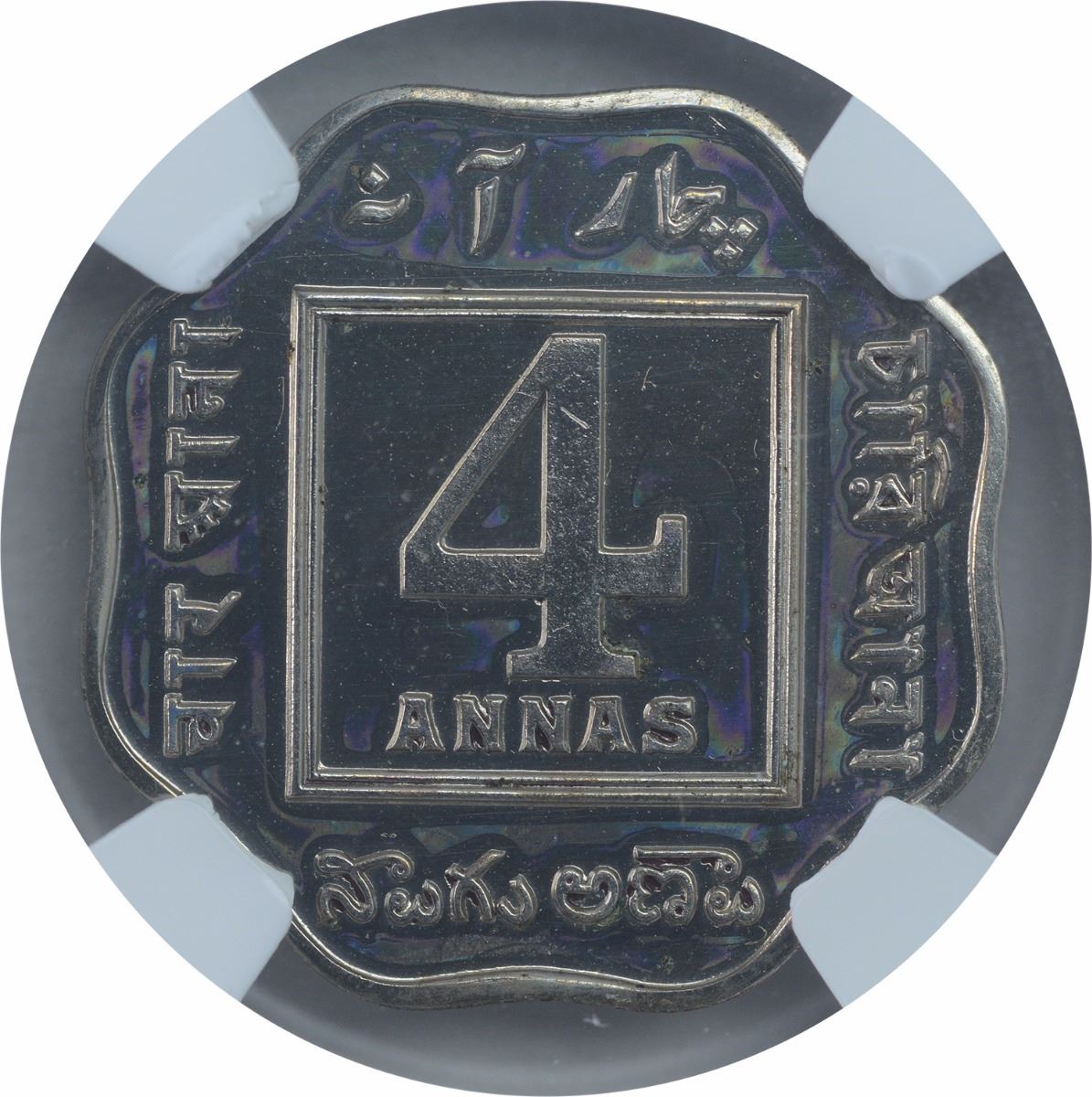 1920, King George V, Copper Nickel 4 Annas, Proof Restrike,Calcutta Mint, (PR # 875), graded slabbed by NGC as PF 65, highest grade for the type, Very Rare.