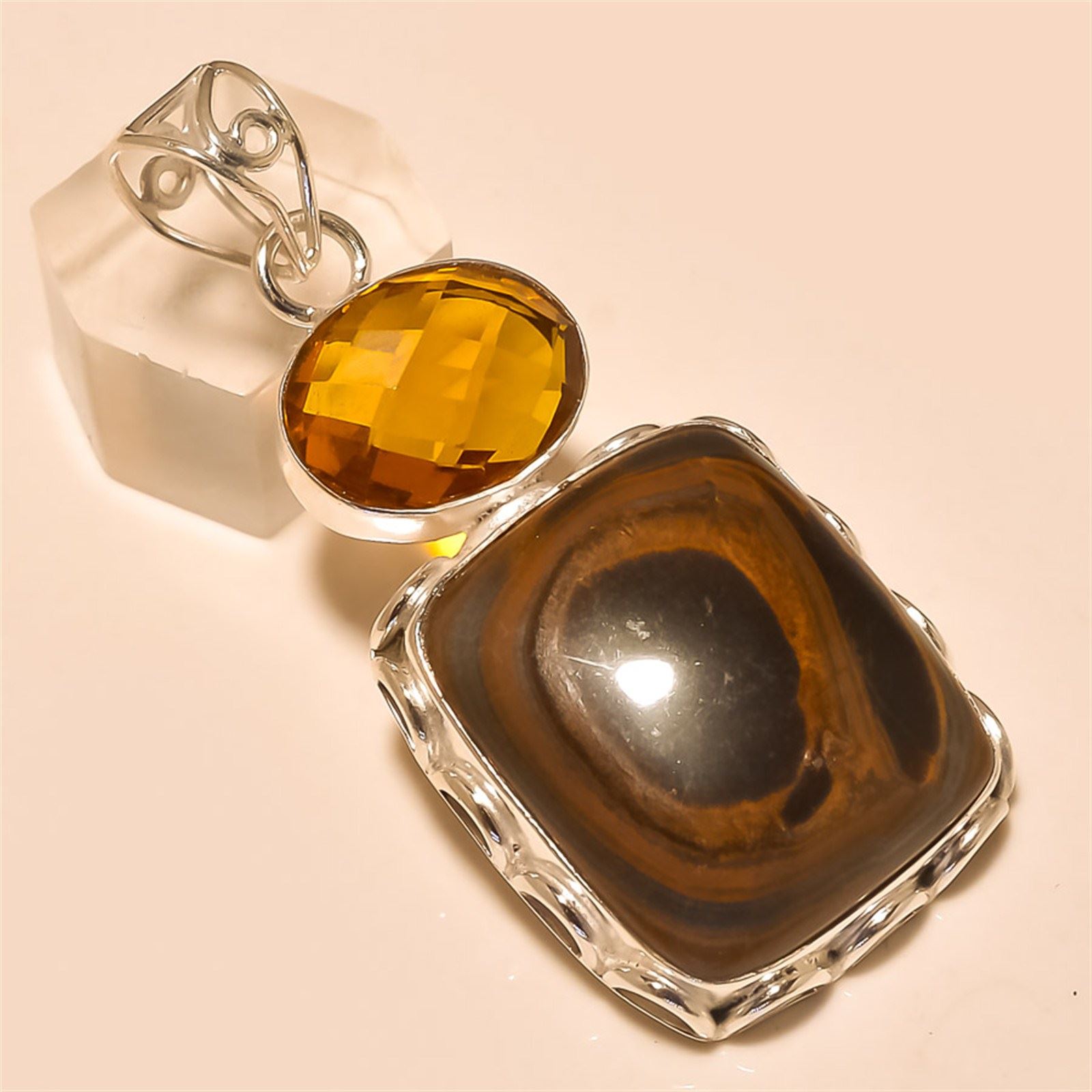Copper Obsidian/Citrine Pendant Solid Sterling Silver Length:2.25 inch Weight:17 gram #P-591