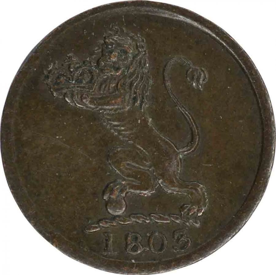 Madras Presidency, Copper 1 Cash, 1803 AD, Obv: company's crest with date below, Rev: cash in persian english, 0.70g, 11.36mm, (PR# 212), about extremely fine.