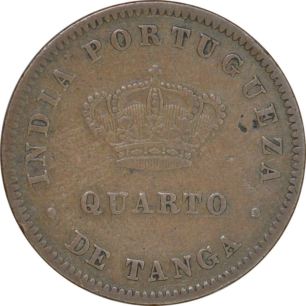 Copper One Fourth Tanga of India Portuguese of Colonial Coinage of Luiiz I.