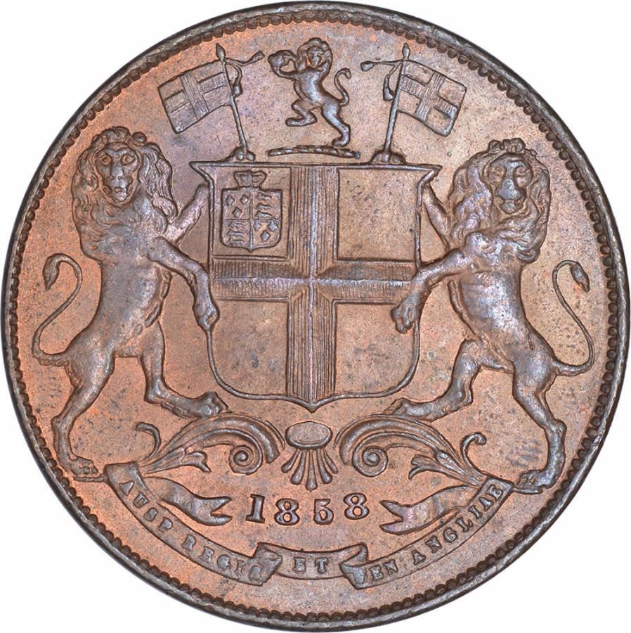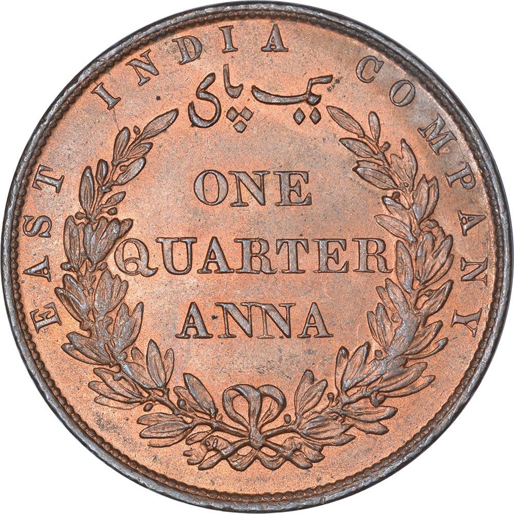 Copper One Quarter Anna Coin of East India Company of Birmingham Mint of 1858.