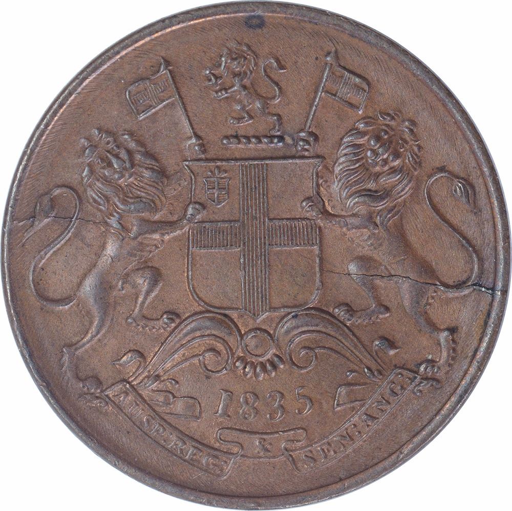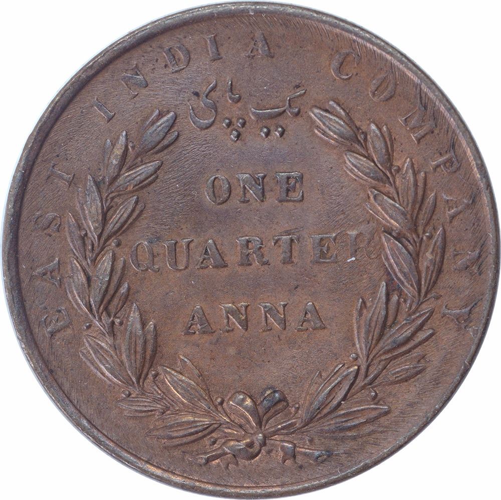 Copper One Quarter Anna Coin of East India Company of Madras Mint of 1835.