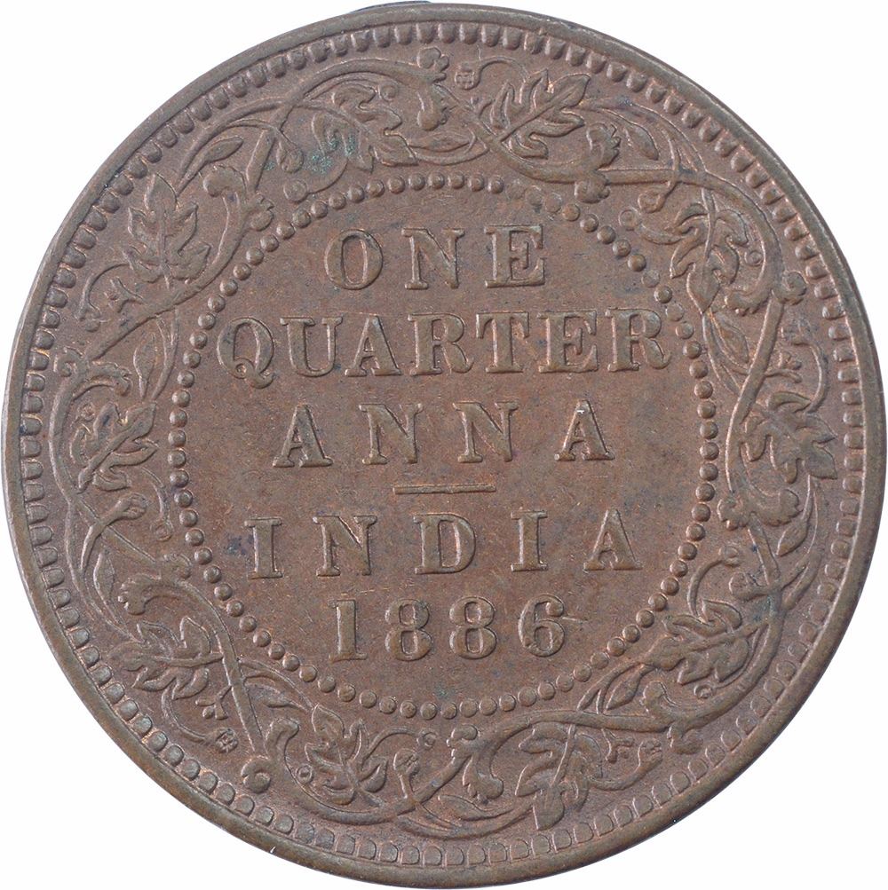 Copper One Quarter Anna Coin of Victoria Empress of Bombay Mint of 1886.