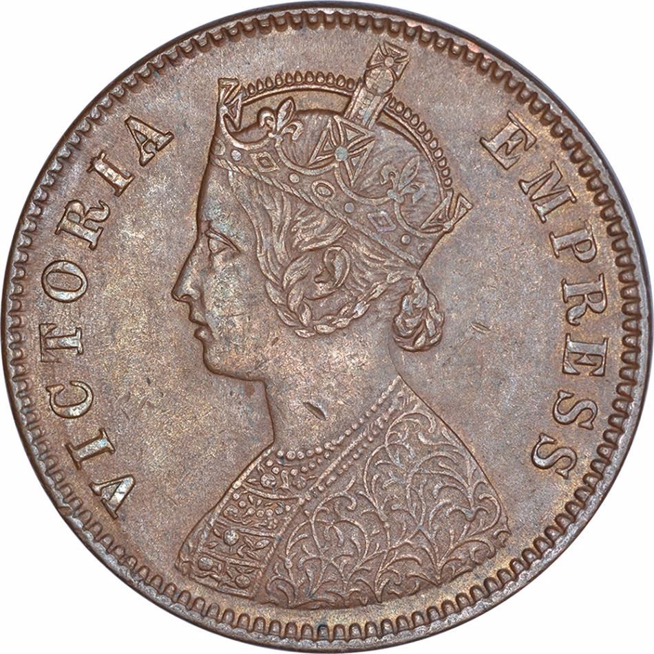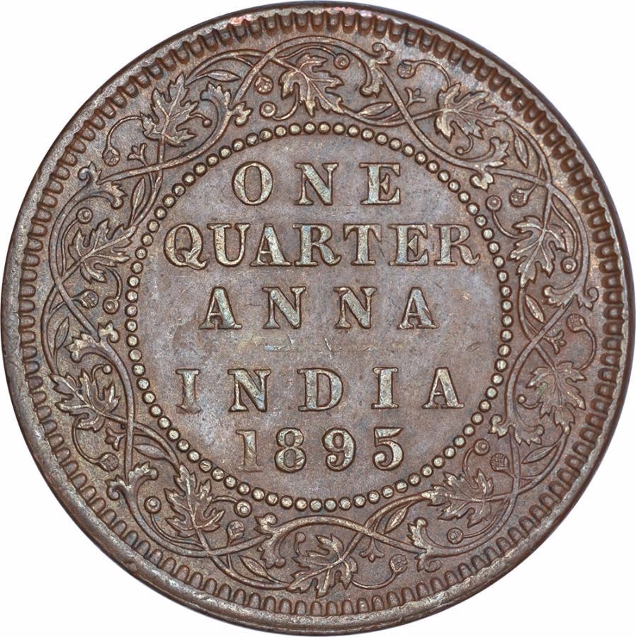 Copper One Quarter Anna Coin of Victoria Empress of Calcutta Mint of 1895.