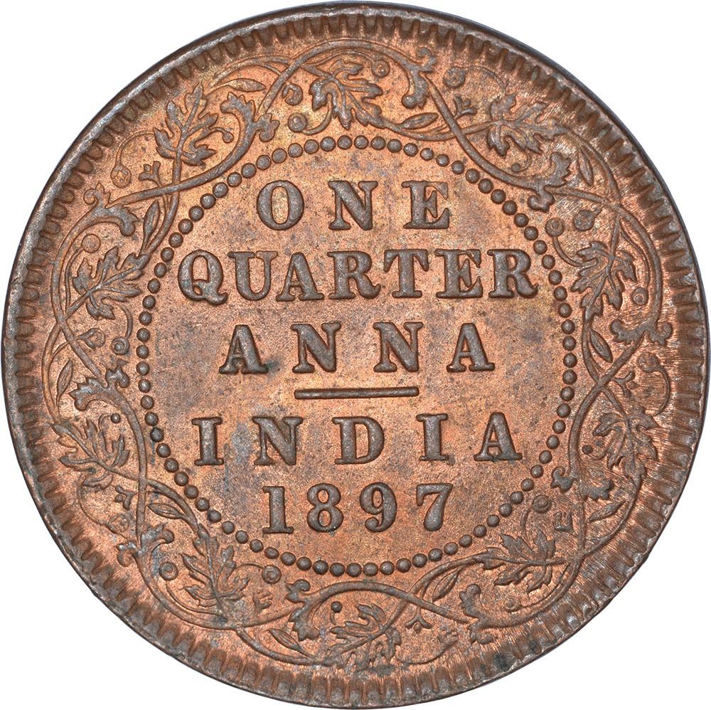Copper One Quarter Anna Coin of Victoria Empress of Calcutta Mint of 1897.