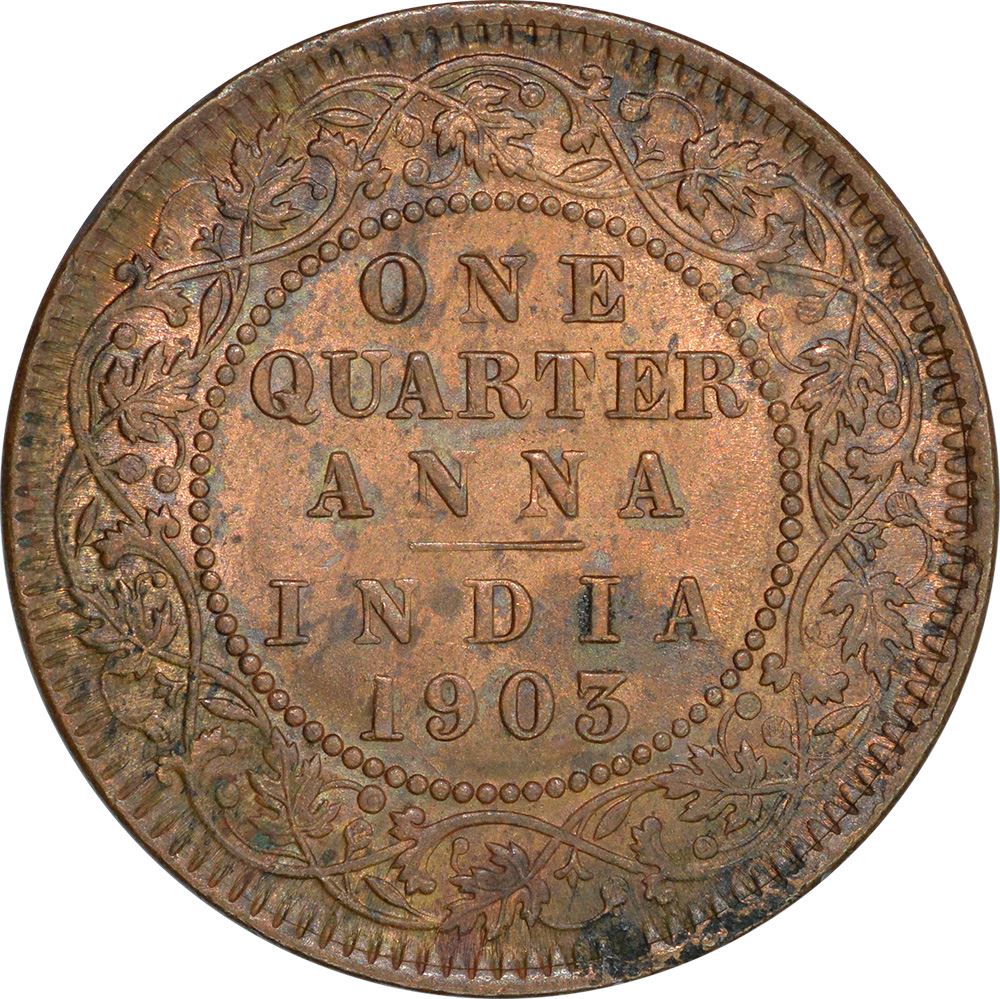 Copper One Quarter Anna of King Edward VII of Calcutta Mint of 1903.