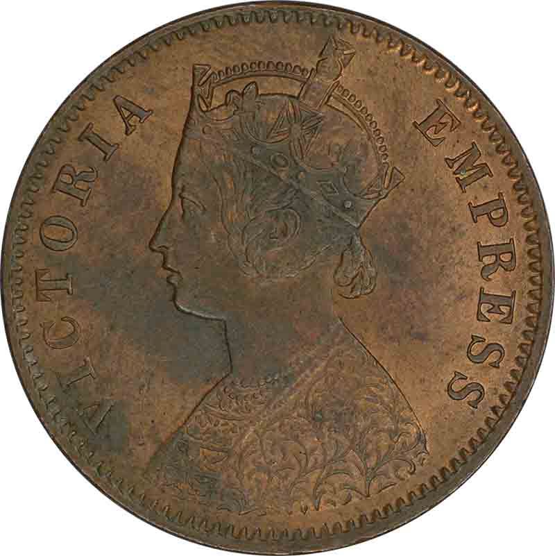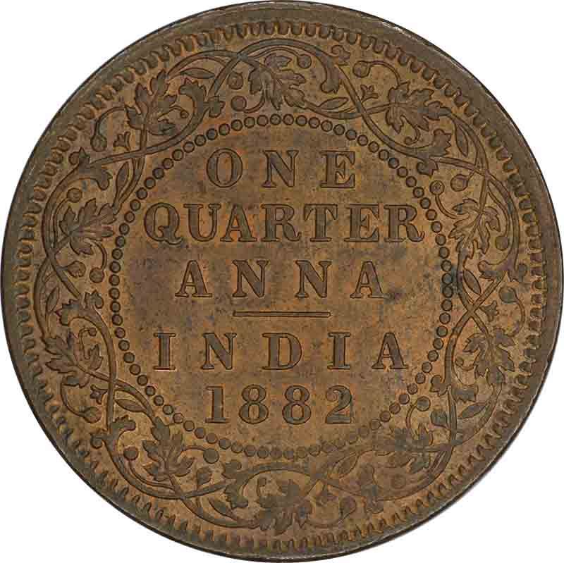 Copper One Quarter Anna of Victoria Empress of Calcutta Mint of 1882.