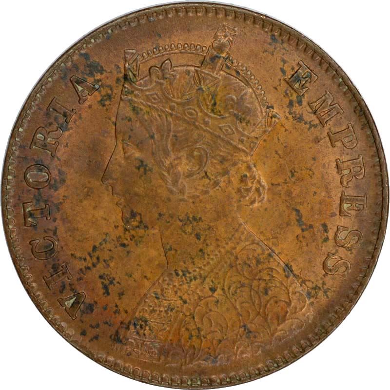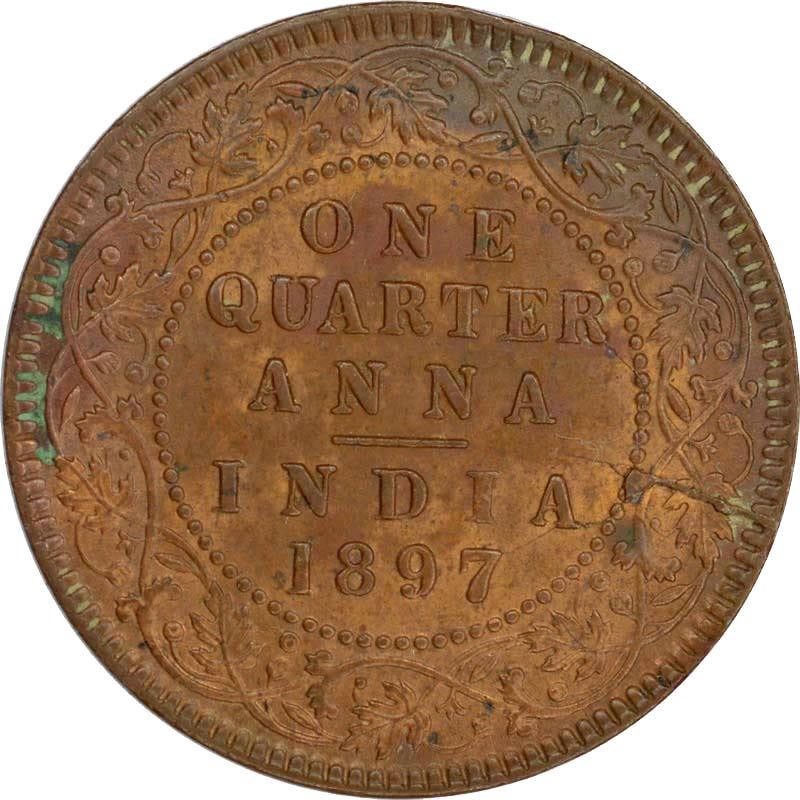 Copper One Quarter Anna of Victoria Empress of Calcutta Mint of 1897.