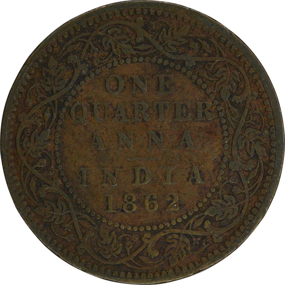 1862, Victoria Queen, Copper 1/4 Anna, Bombay Mint, bead below date,(PR # 603), about very fine+, Rare.