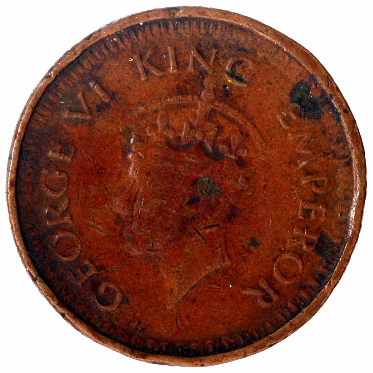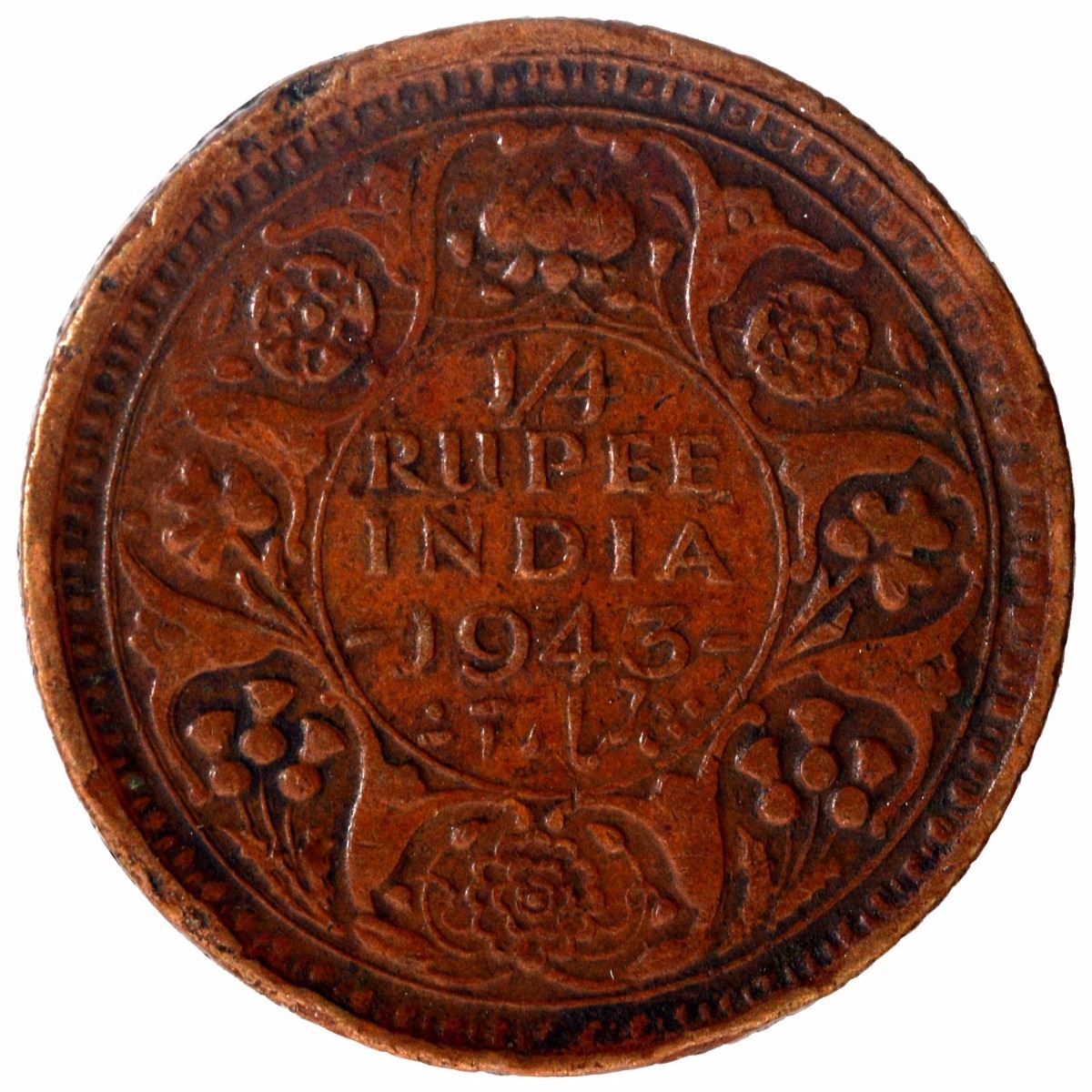 Copper One Quarter Rupee Coin of King George VI of Calcutta Mint of 1943.
