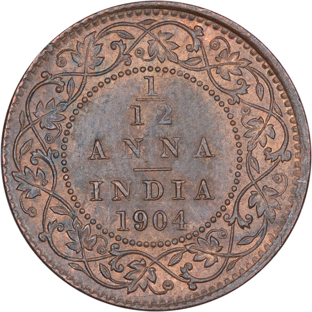 Copper One Twelfth Anna Coin of Edward VII of Calcutta Mint of 1904.