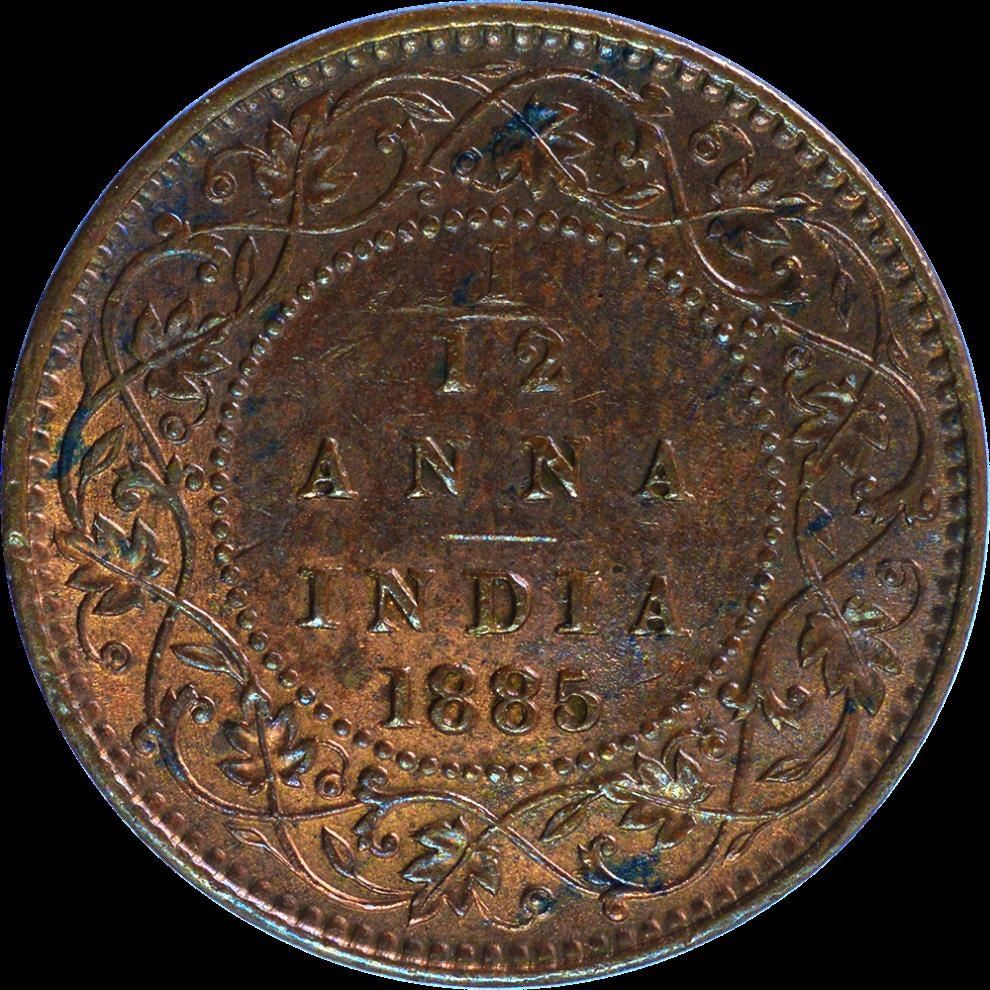 Copper One Twelfth Anna Coin of Victoria Empress of 1885.