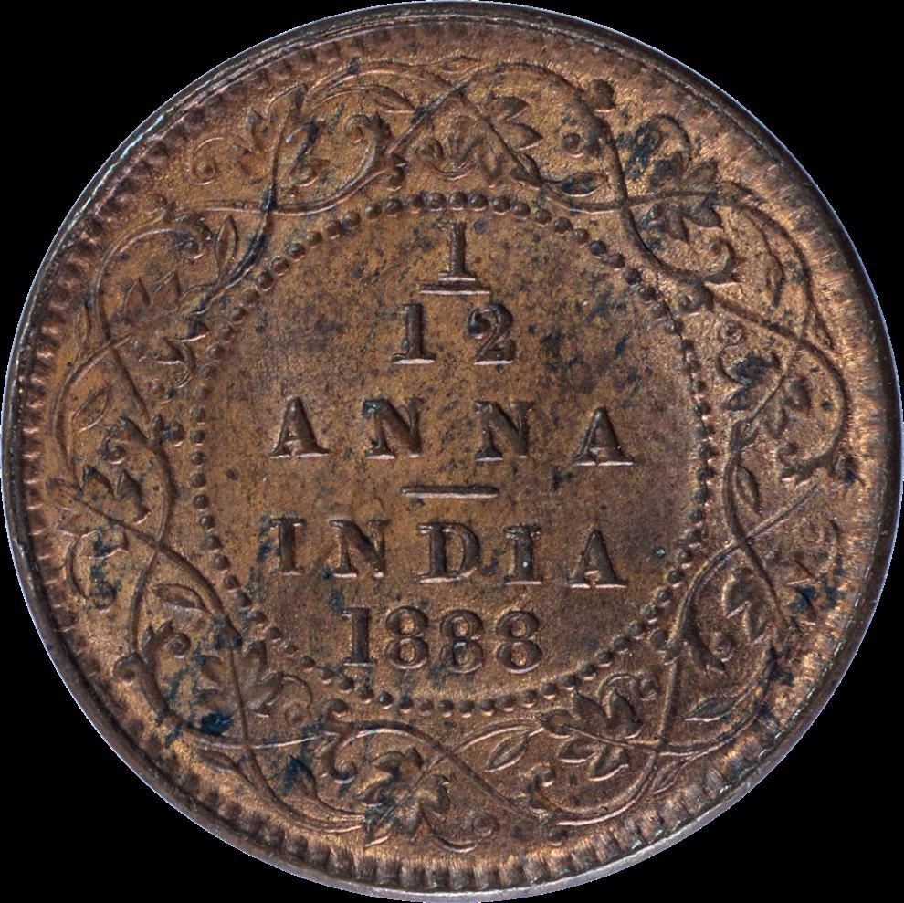1888,Victoria Empress,Copper 1/12 Anna,Calcutta Mint,Bust B,(PR # 793),Brown GemUNC,Rare.