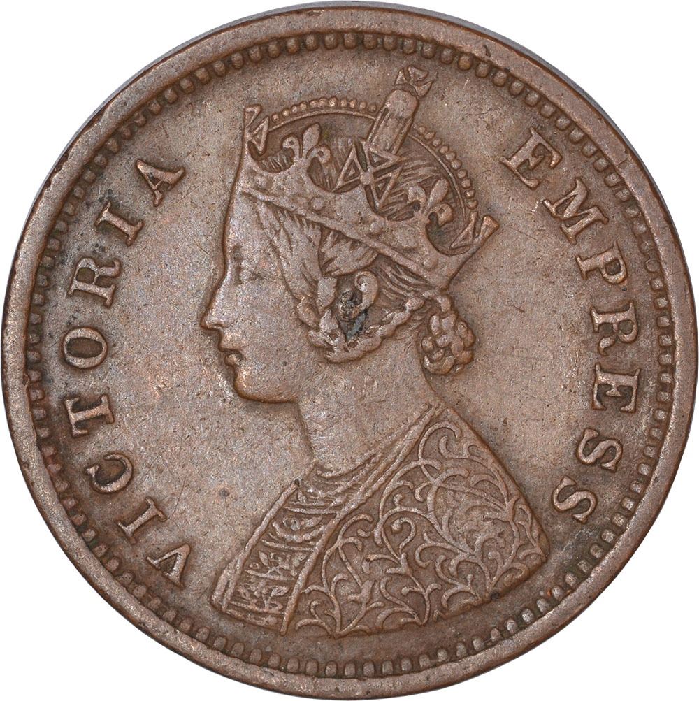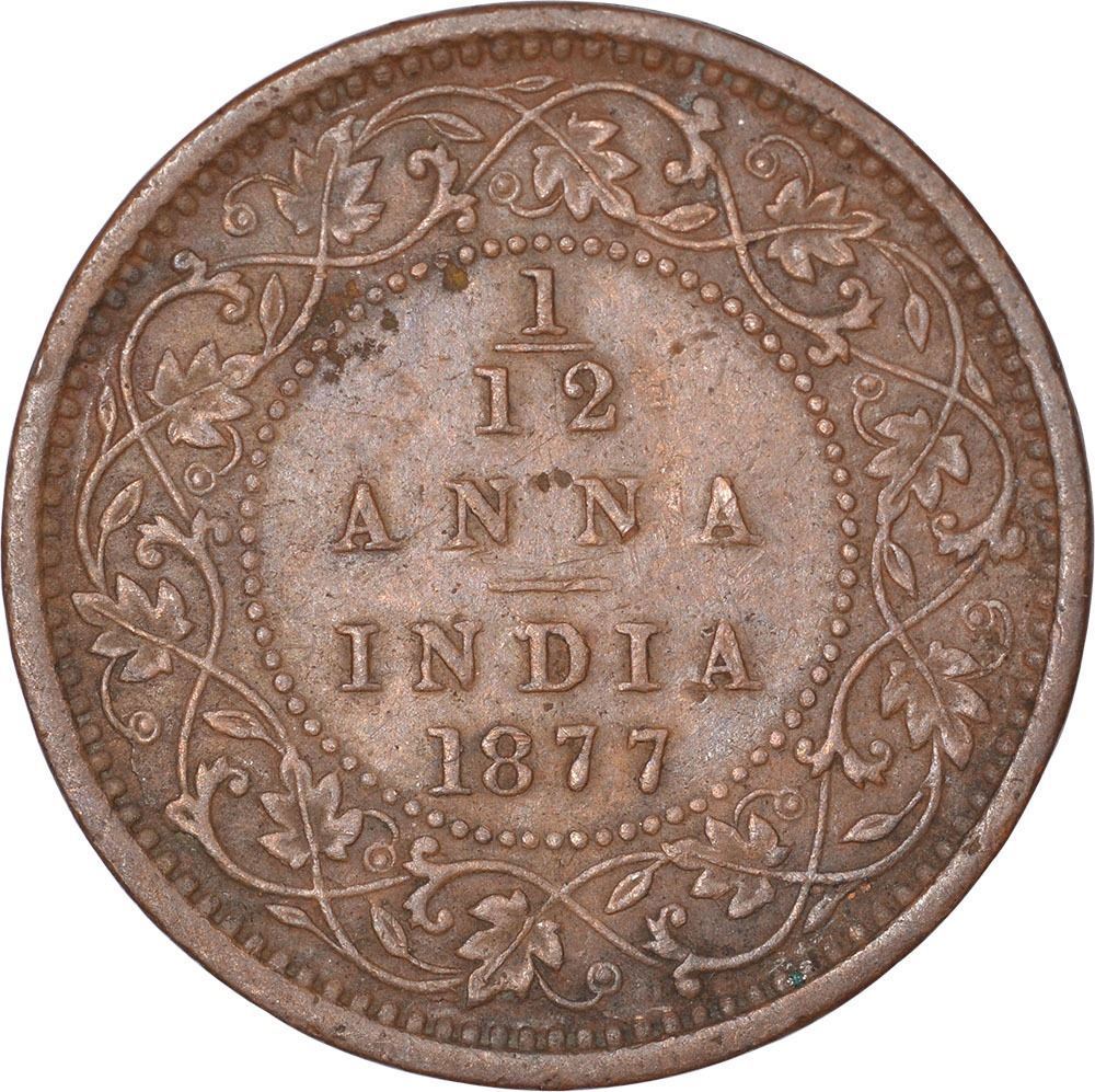 Copper One Twelfth Anna Coin of Victoria Empress of Bombay Mint of 1877.