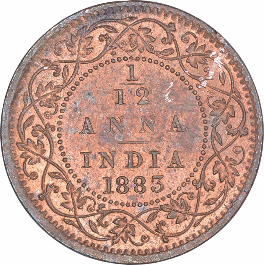 Copper One Twelfth Anna Coin of Victoria Empress of Bombay Mint of 1883.