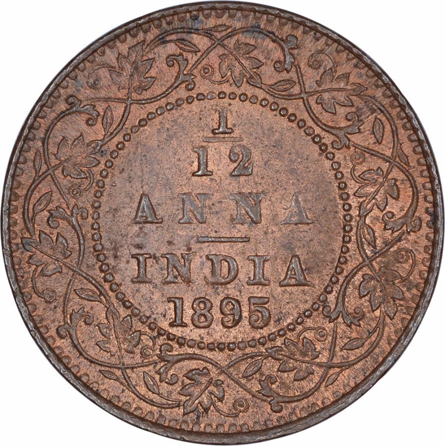 Copper One Twelfth Anna Coin of Victoria Empress of Calcutta Mint of 1895.