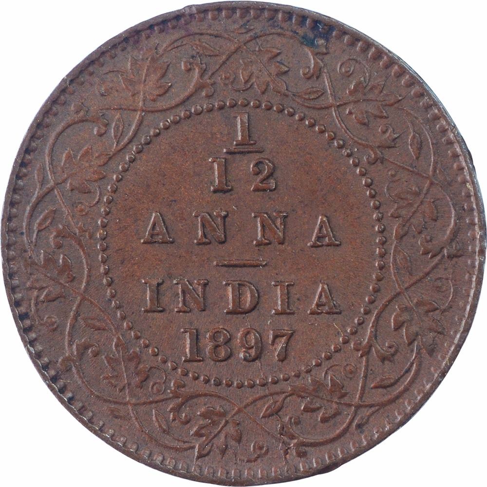 Copper One Twelfth Anna Coin of Victoria Empress of Calcutta Mint of 1897.